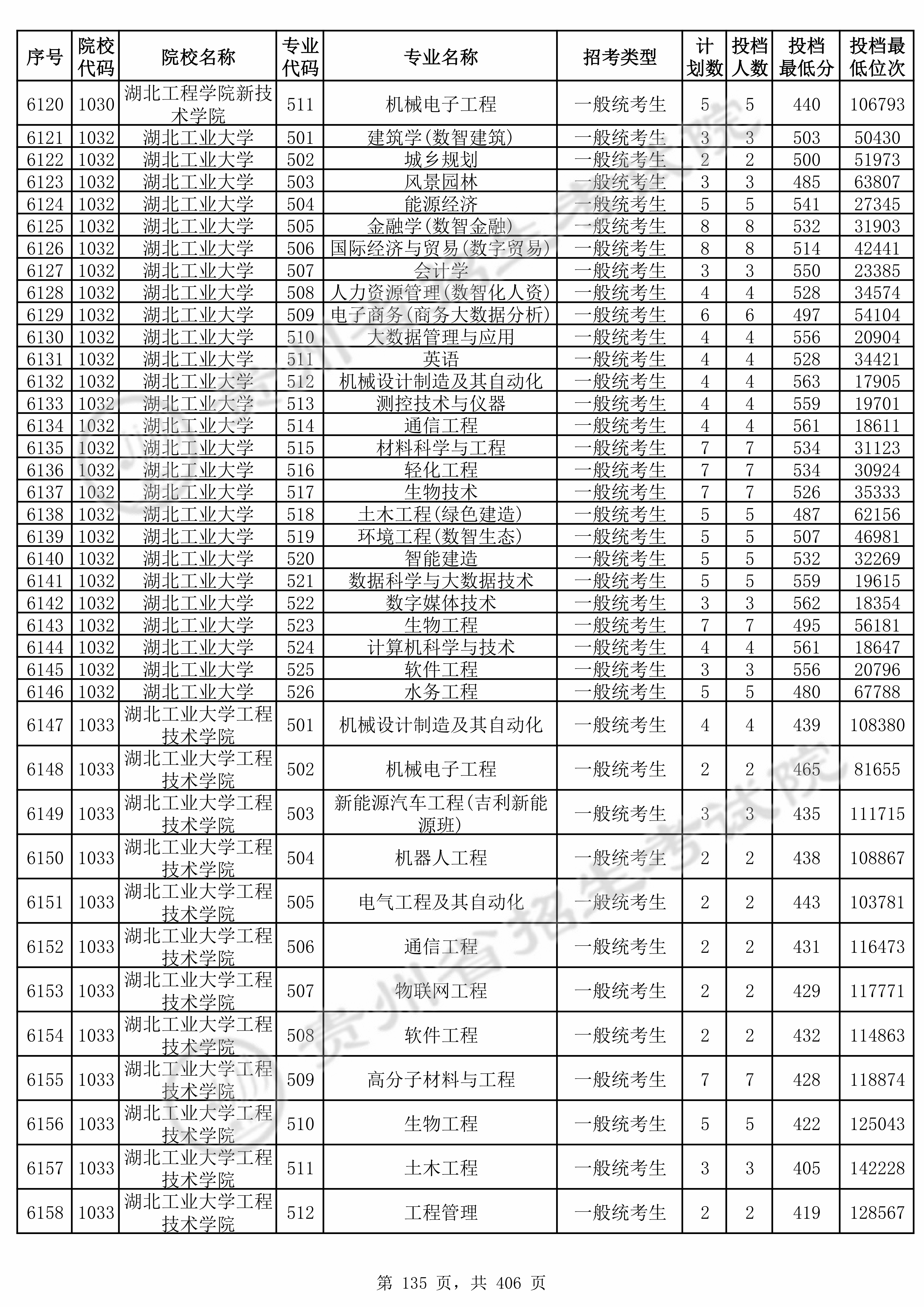 | 1033 | 湖北工业大学工程技术学院 | 501 | 机械设计制造及其自动化 | 439 | 108380 | 本科 | 物理 ,再选: 化学 | 1 |
