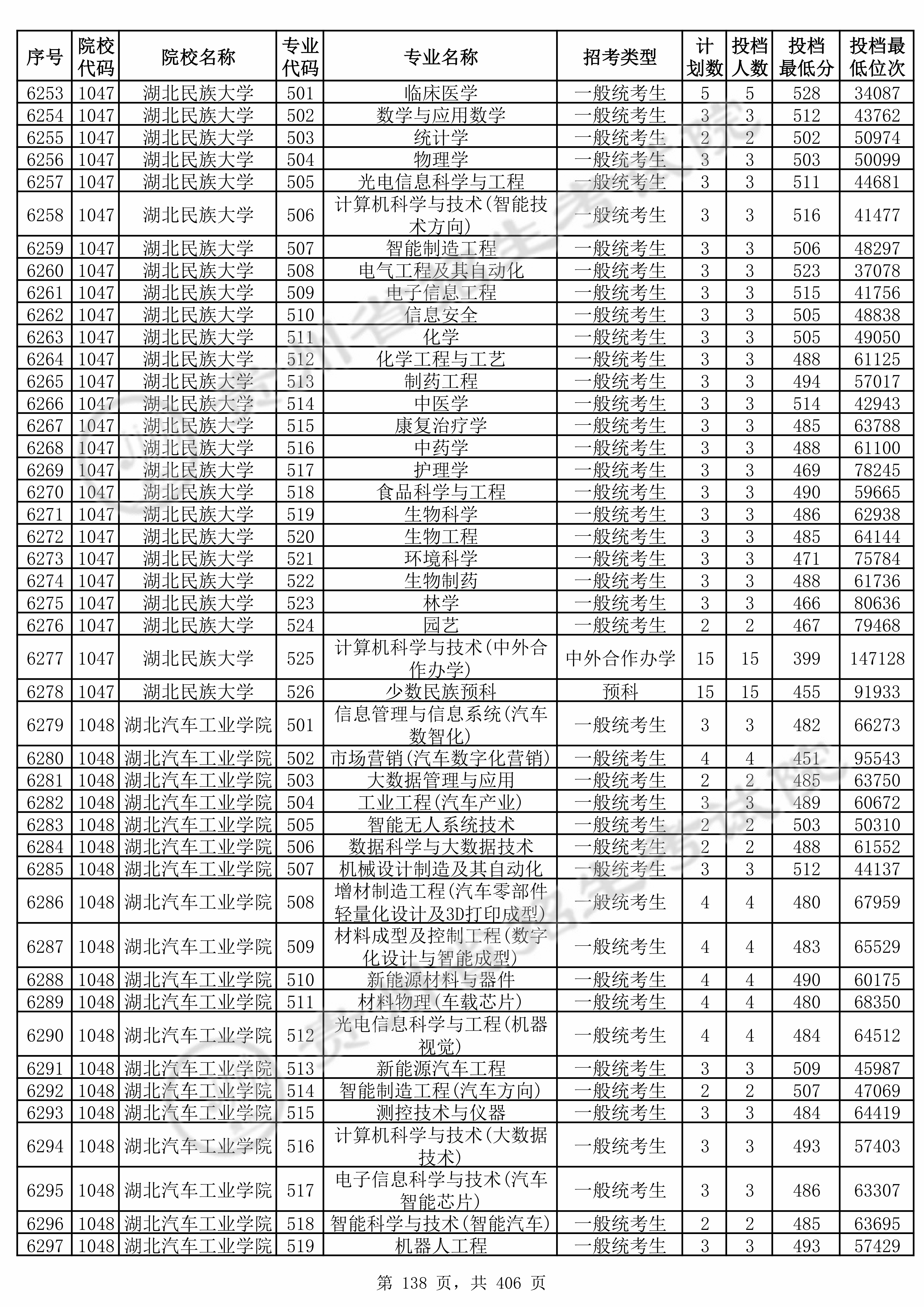 | 院校代码 | 院校名称 | 专业代码 | 专业名称 | 最低分数 | 最低位次 | 专业层次 | 限考科目 | 投档 |
