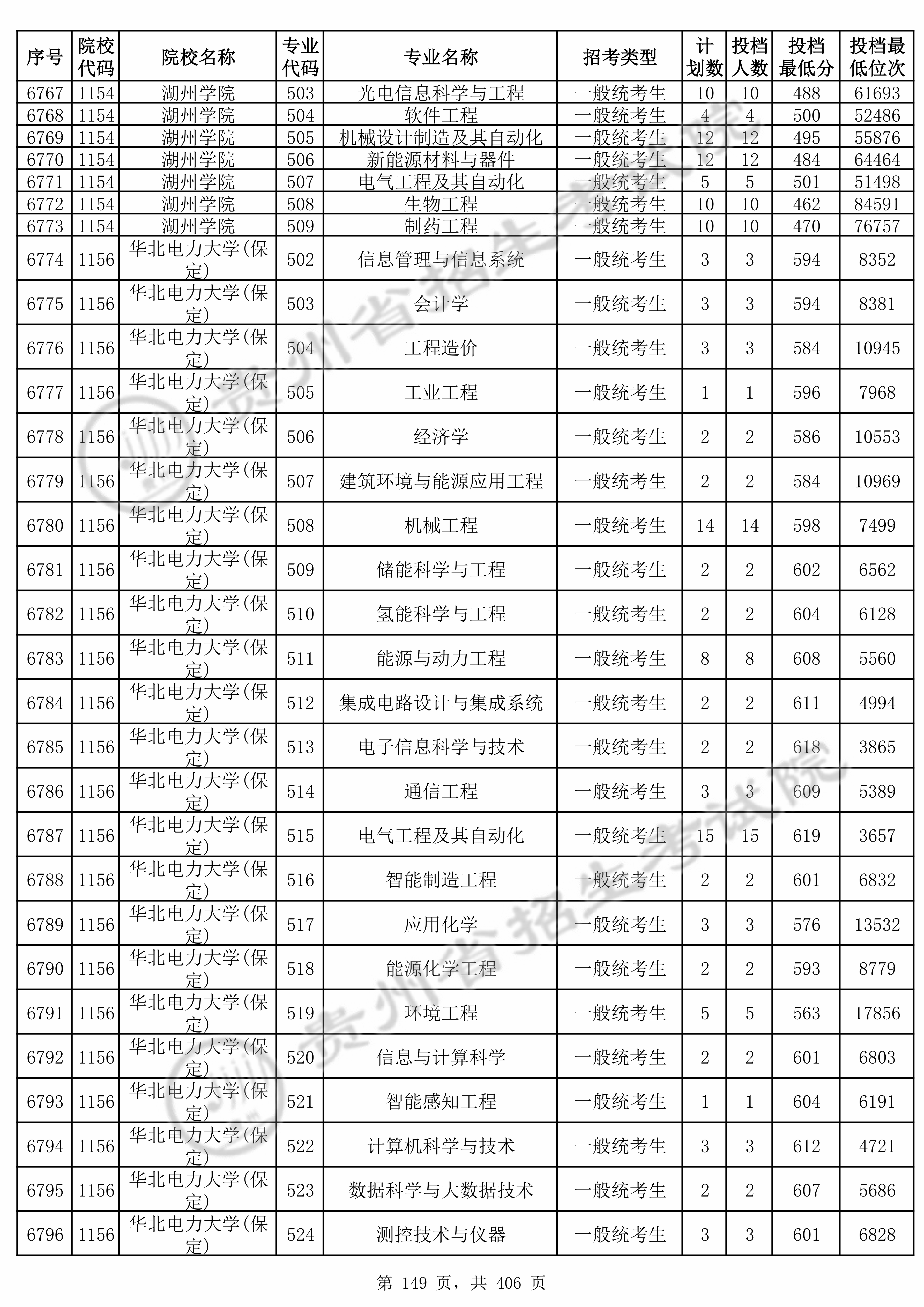2025年贵州高考普通类本科批 湖州学院 的 光电信息科学与工程 专业录取分数溯源信息