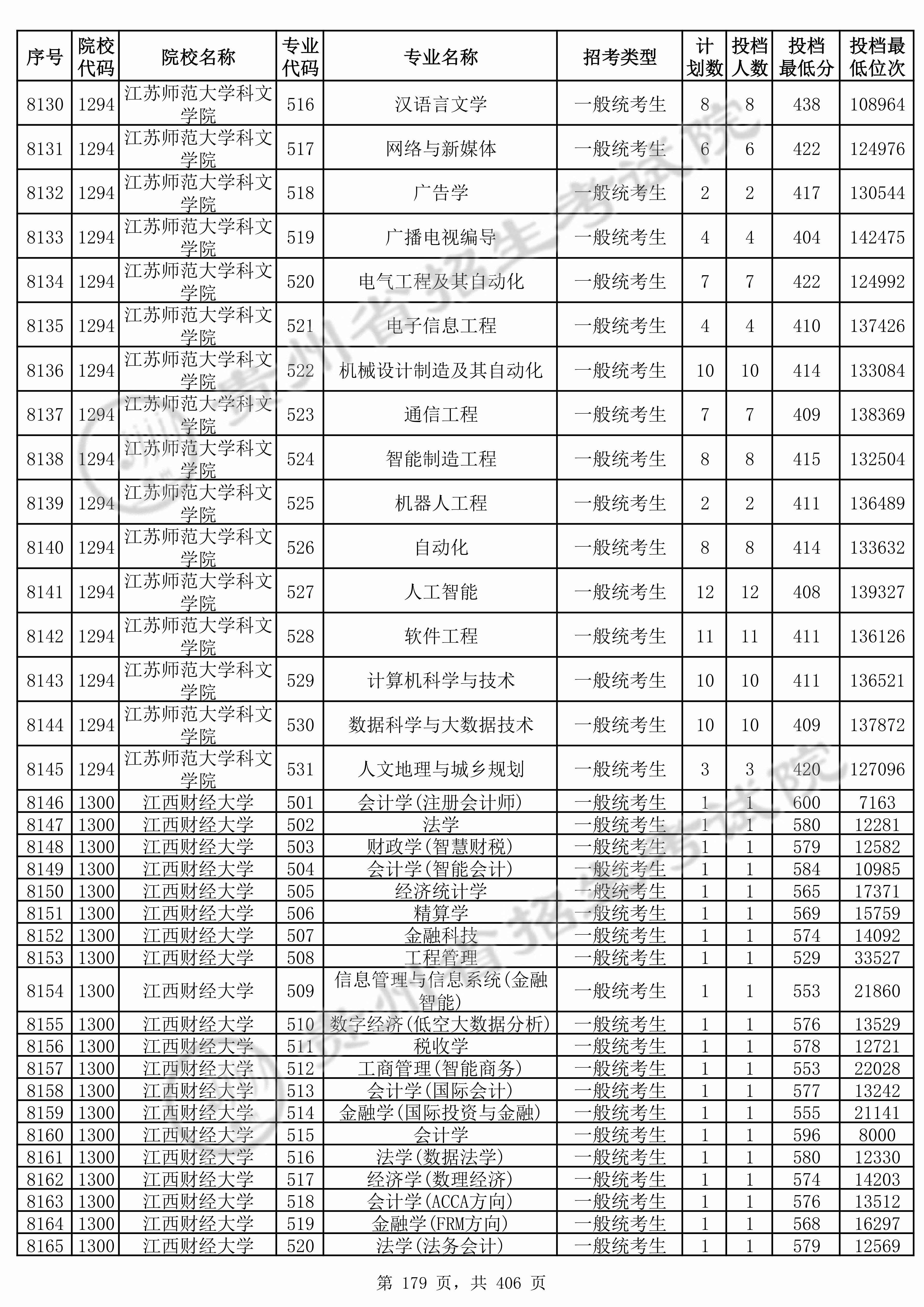 全部专业投档情况