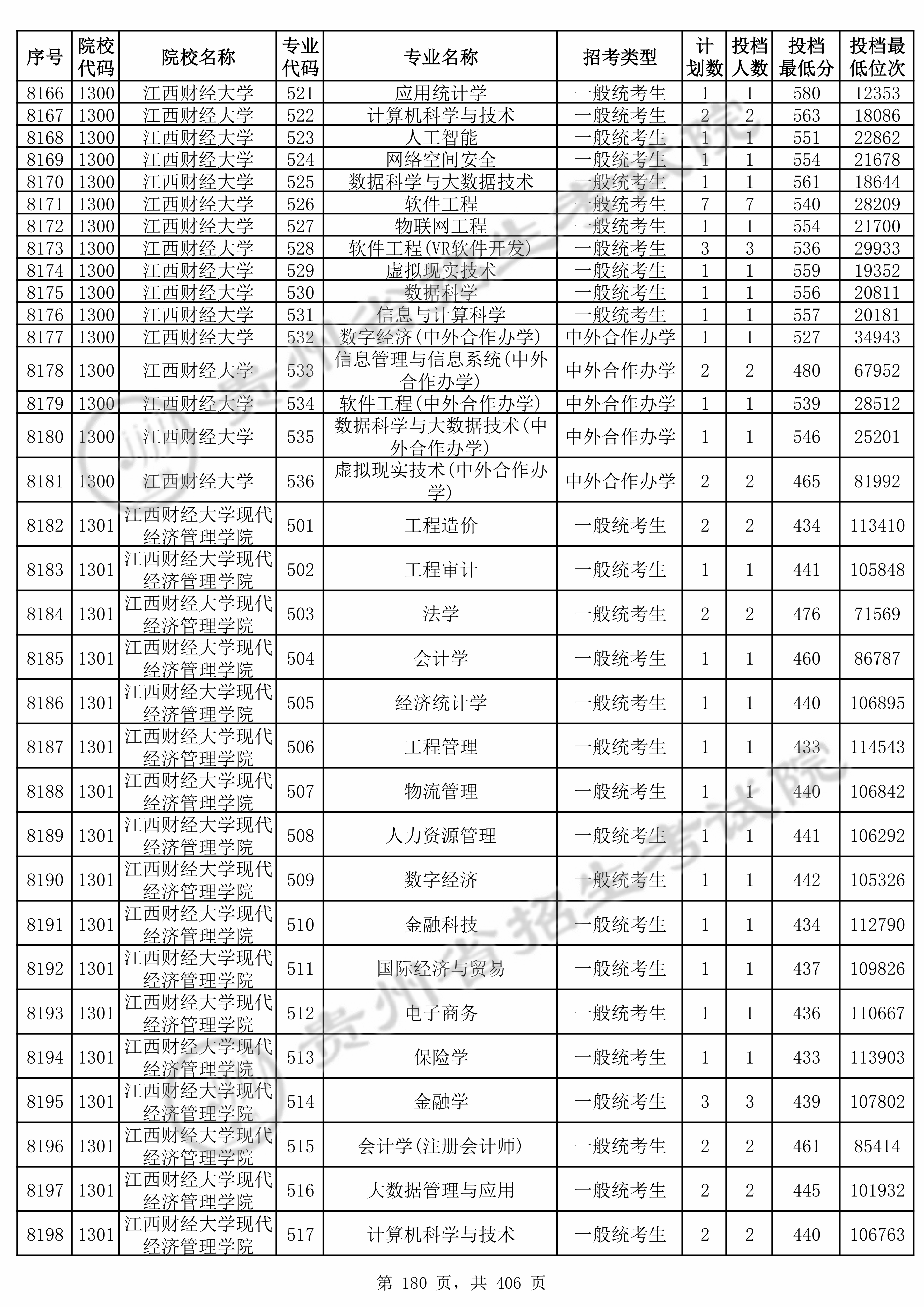 | 1300 | 江西财经大学 | 527 | 物联网工程 | 554 | 21700 | 本科 | 物理 ,再选: 化学 | 1 |