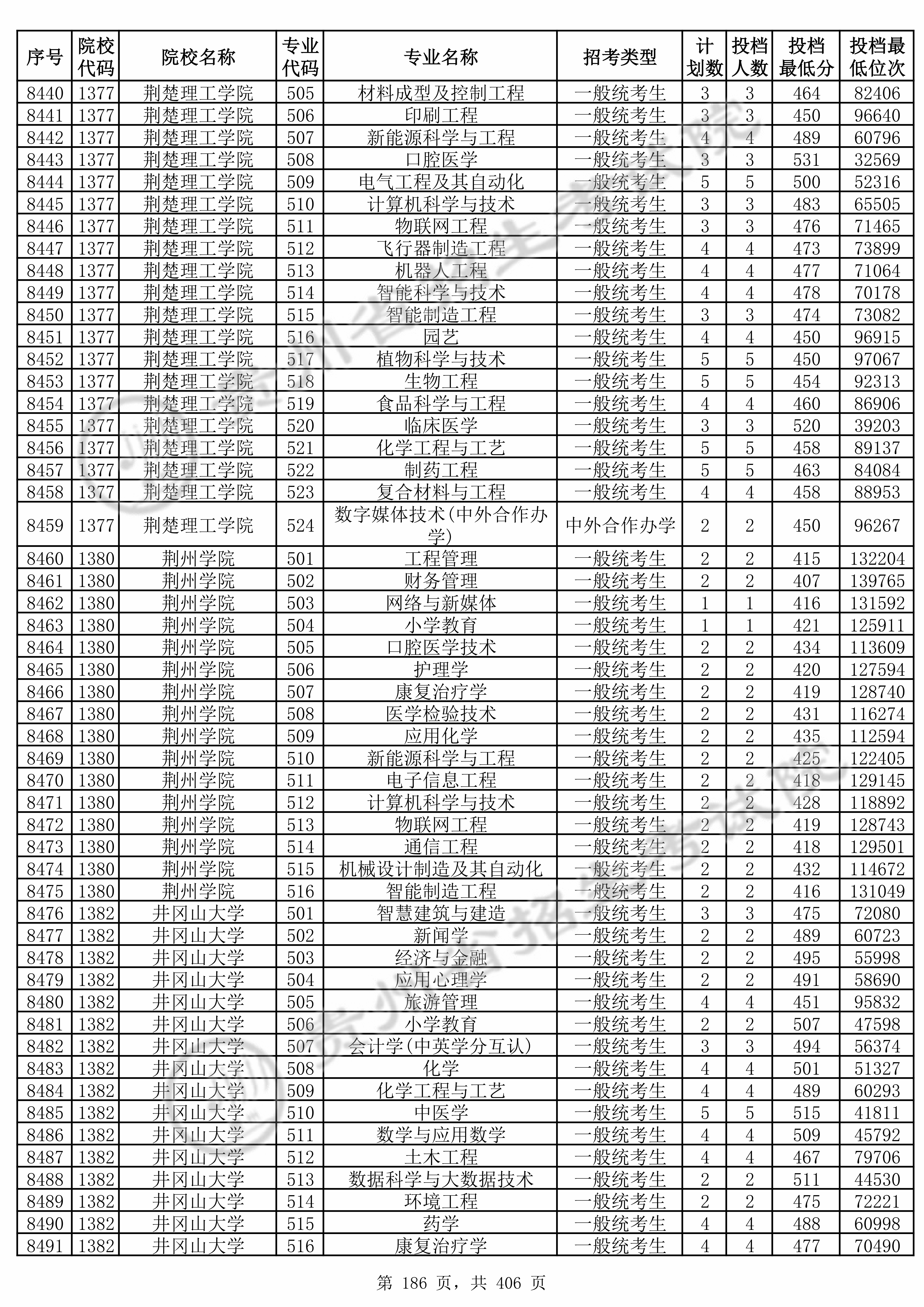全部专业投档情况