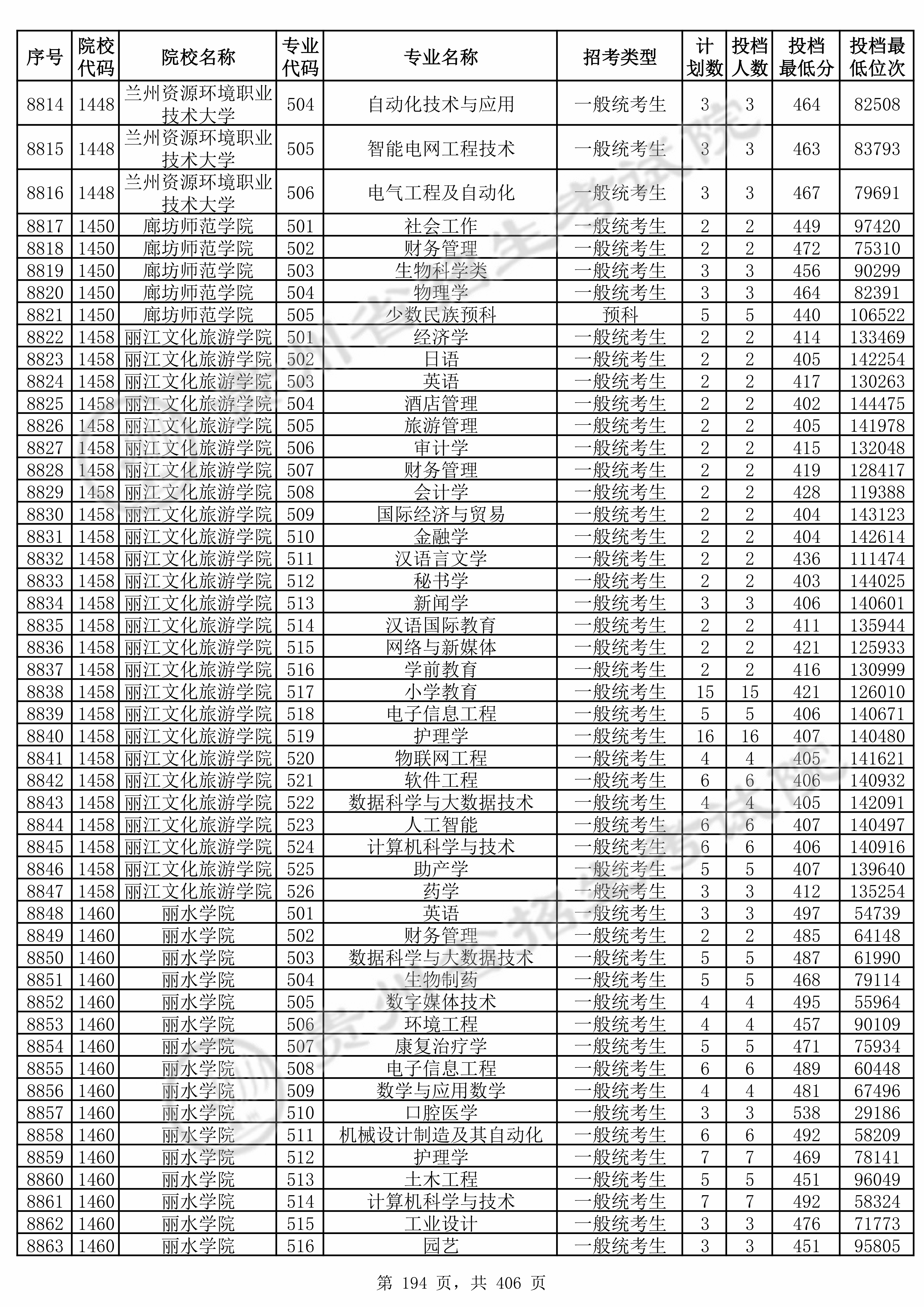 | 院校代码 | 院校名称 | 专业代码 | 专业名称 | 最低分数 | 最低位次 | 专业层次 | 限考科目 | 投档 |