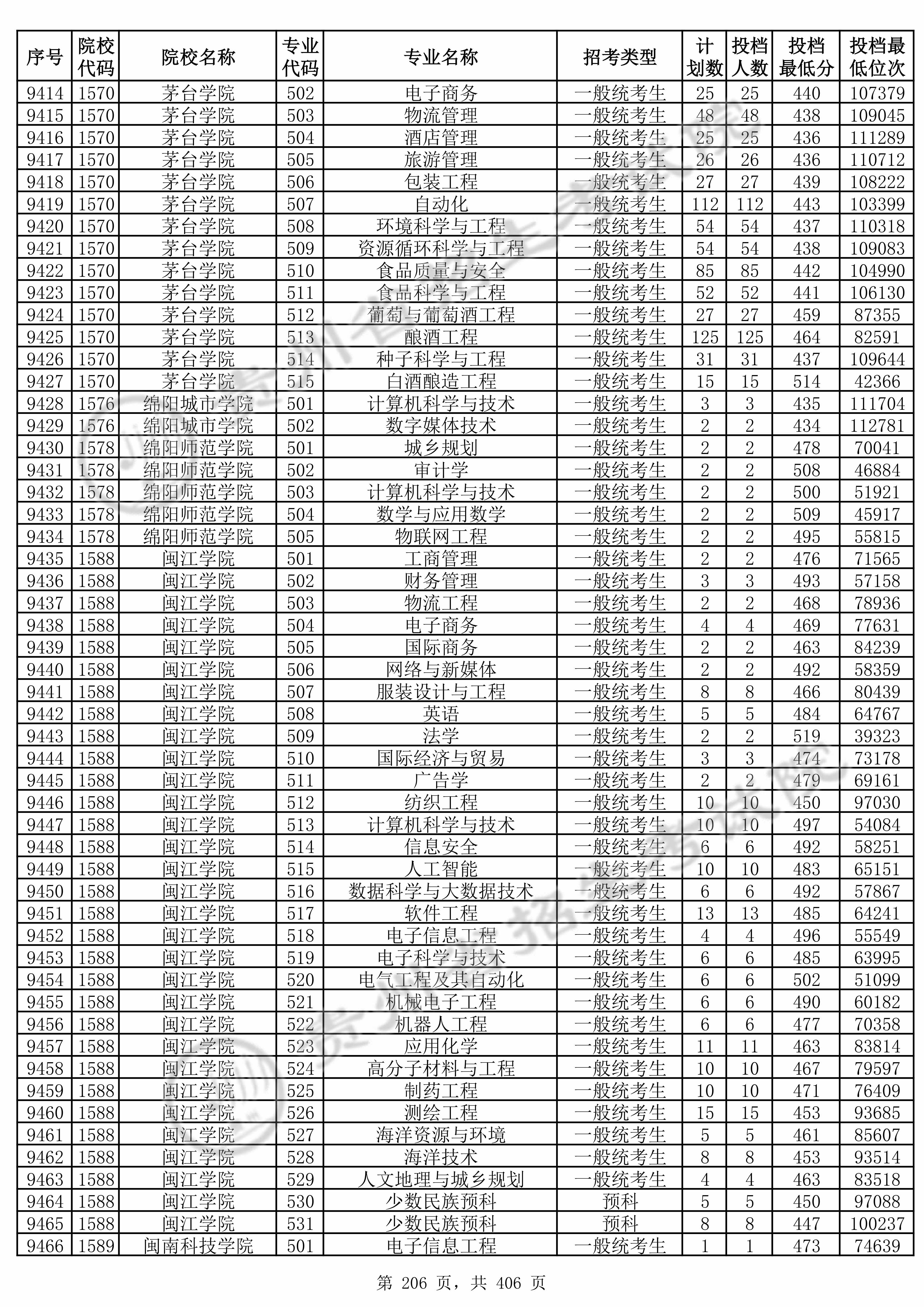 | 院校代码 | 院校名称 | 专业代码 | 专业名称 | 最低分数 | 最低位次 | 专业层次 | 限考科目 | 投档 |