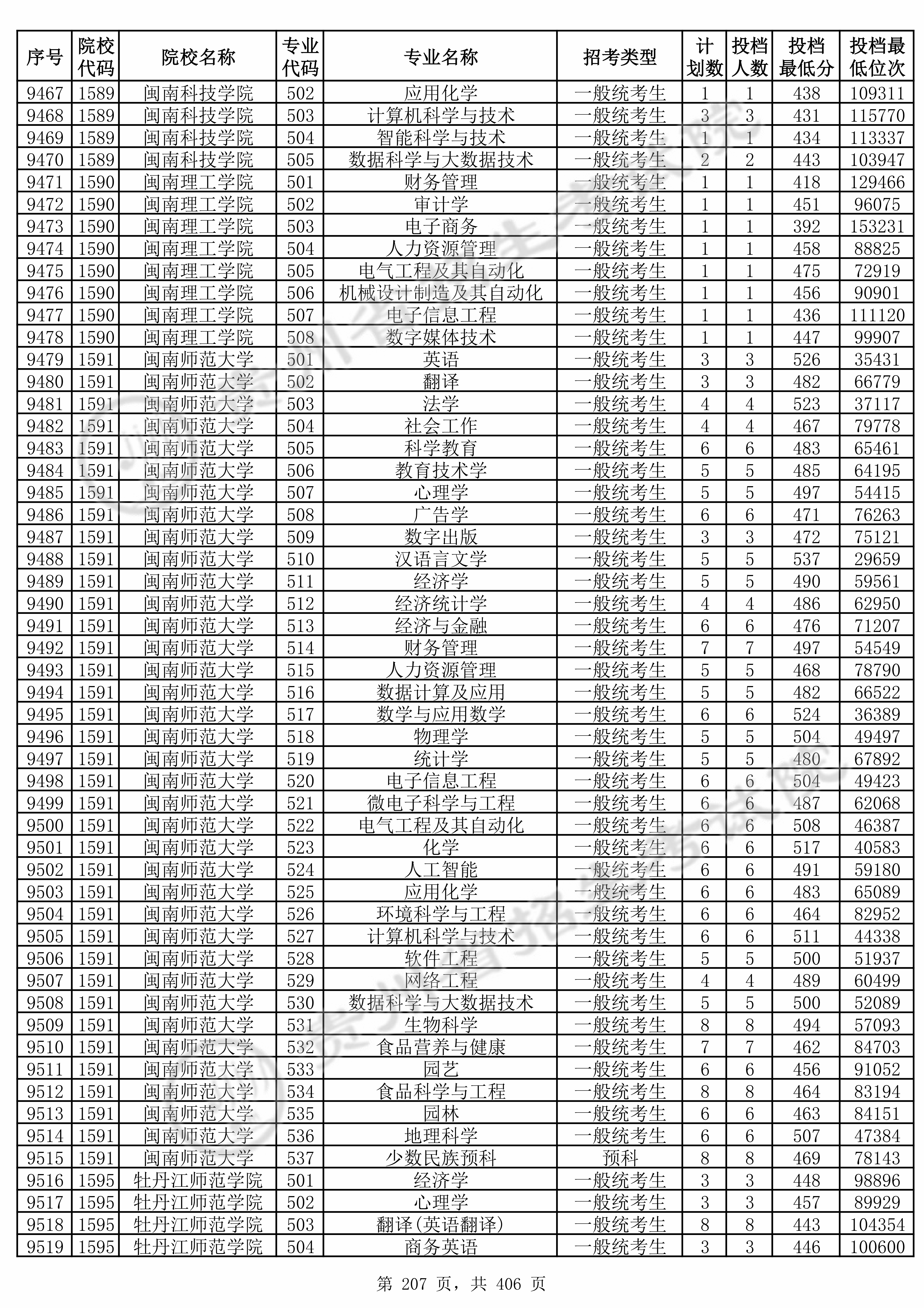 | 院校代码 | 院校名称 | 专业代码 | 专业名称 | 最低分数 | 最低位次 | 专业层次 | 限考科目 | 投档 |