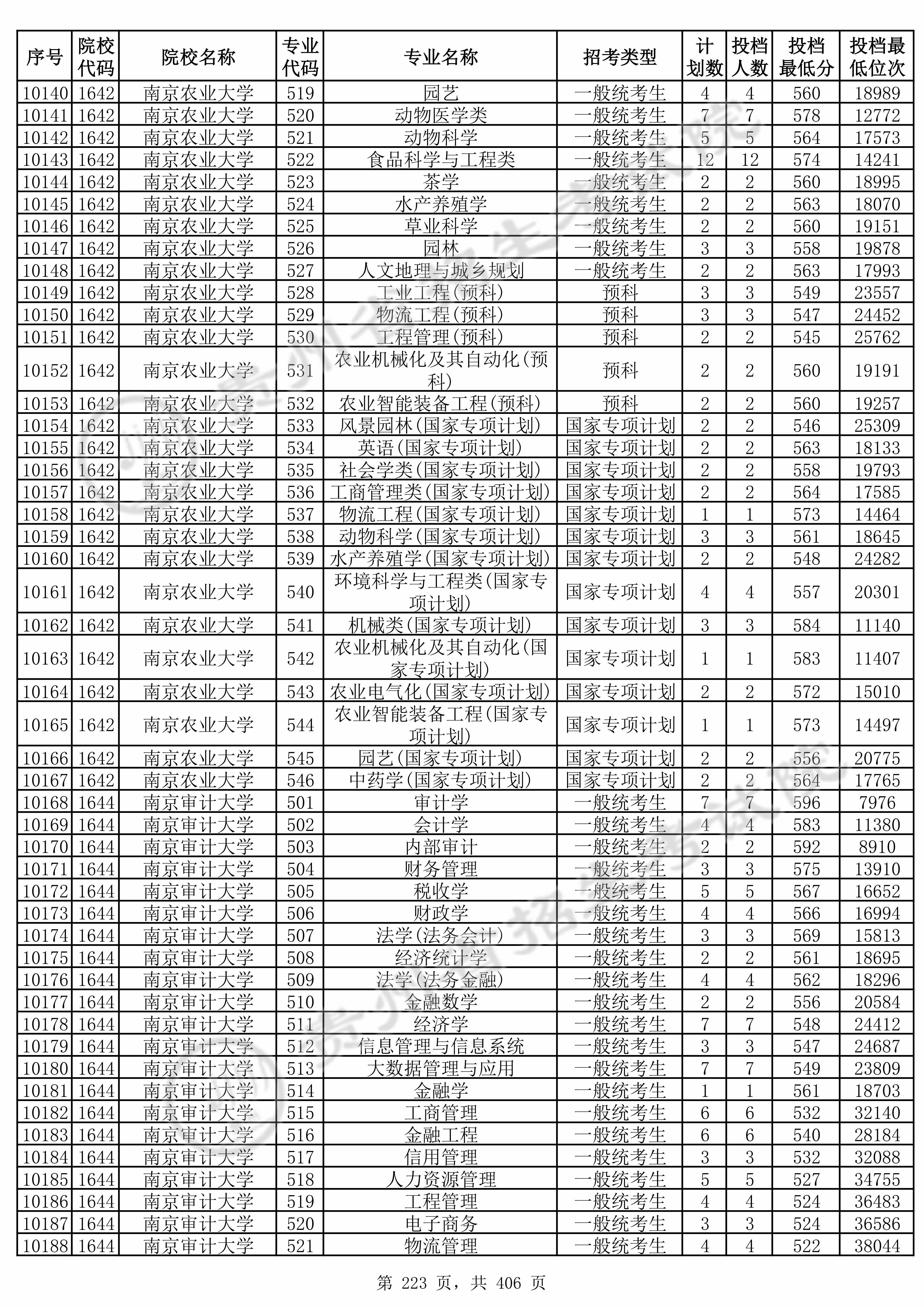 | 1642 | 南京农业大学 | 540 | 环境科学与工程类(国家专项计划) | 557 | 20301 | 本科 | 物理 ,再选: 化学 | 1 |