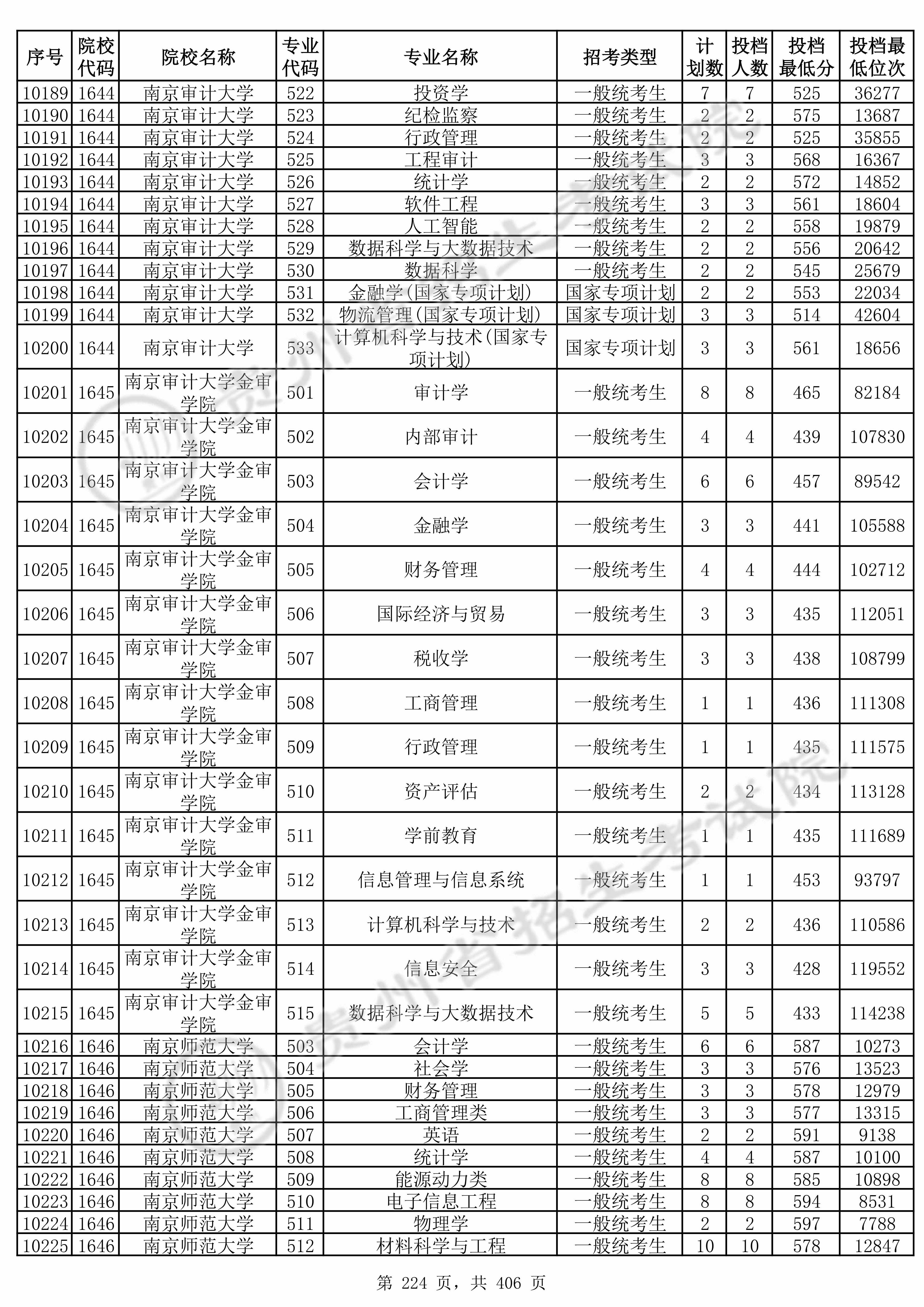 | 1645 | 南京审计大学金审学院 | 504 | 金融学 | 441 | 105588 | 本科 | 物理 ,再选: 不限 | 1 |