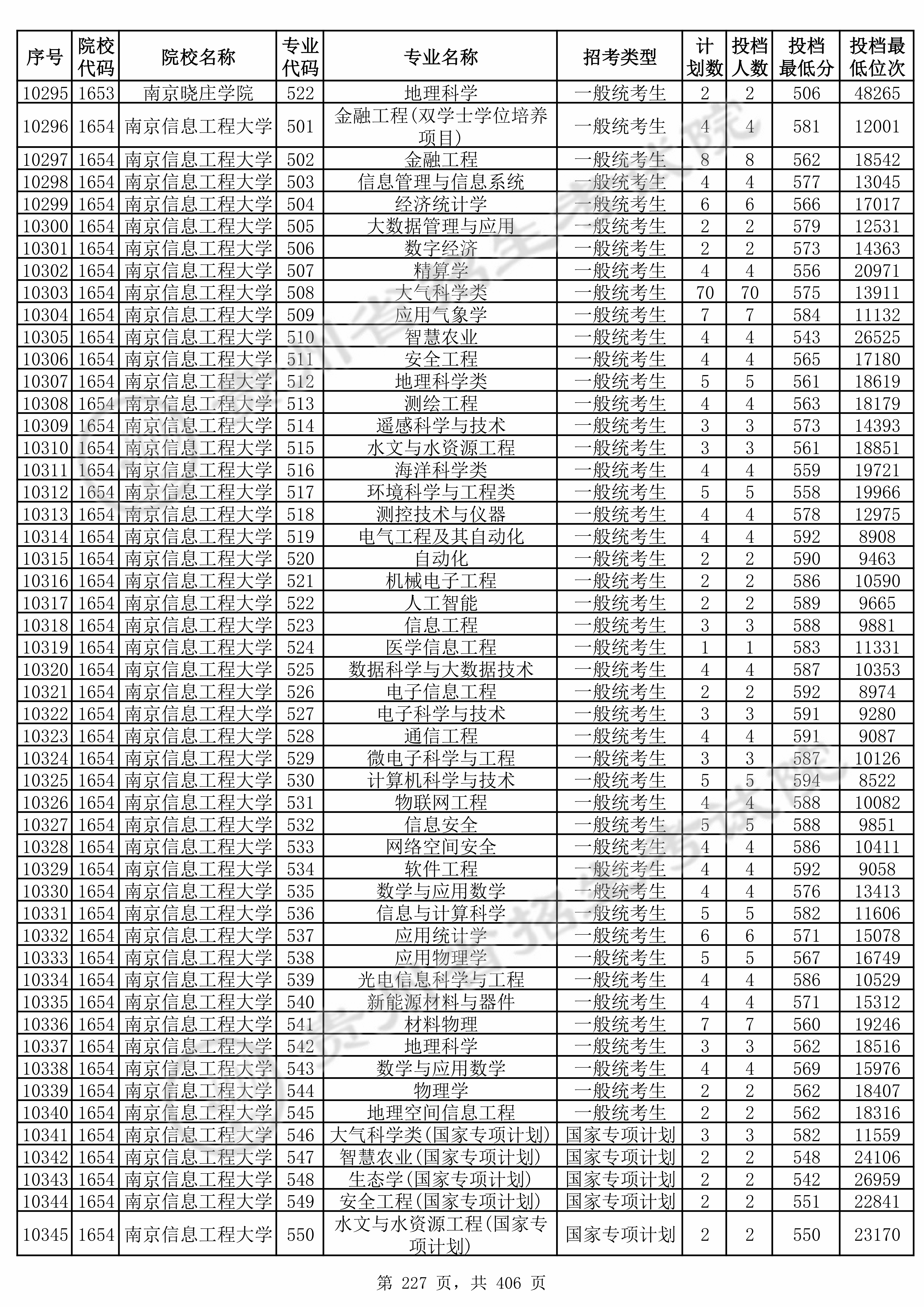 | 1654 | 南京信息工程大学 | 537 | 应用统计学 | 571 | 15078 | 本科 | 物理 ,再选: 化学 | 1 |