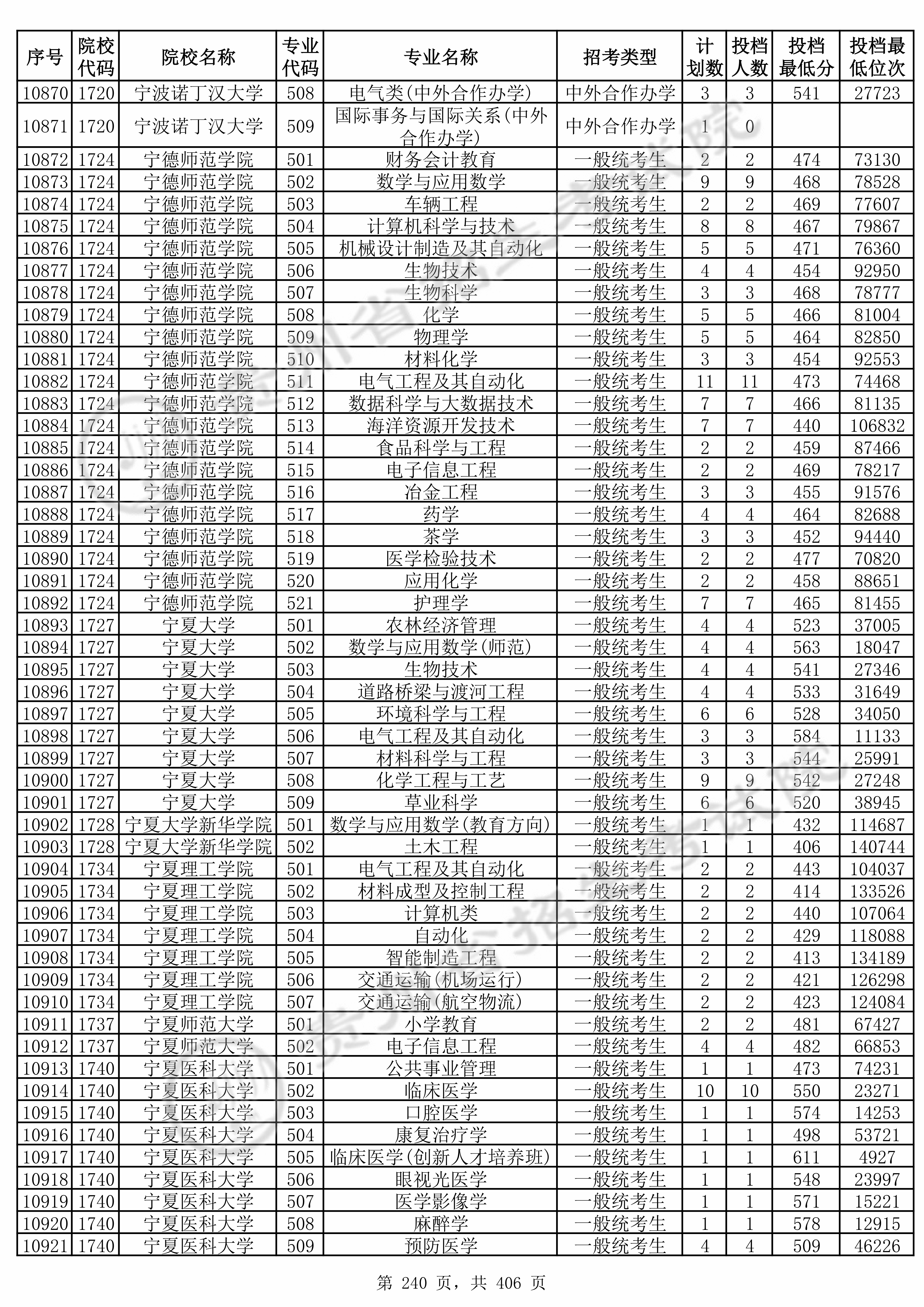 全部专业投档情况