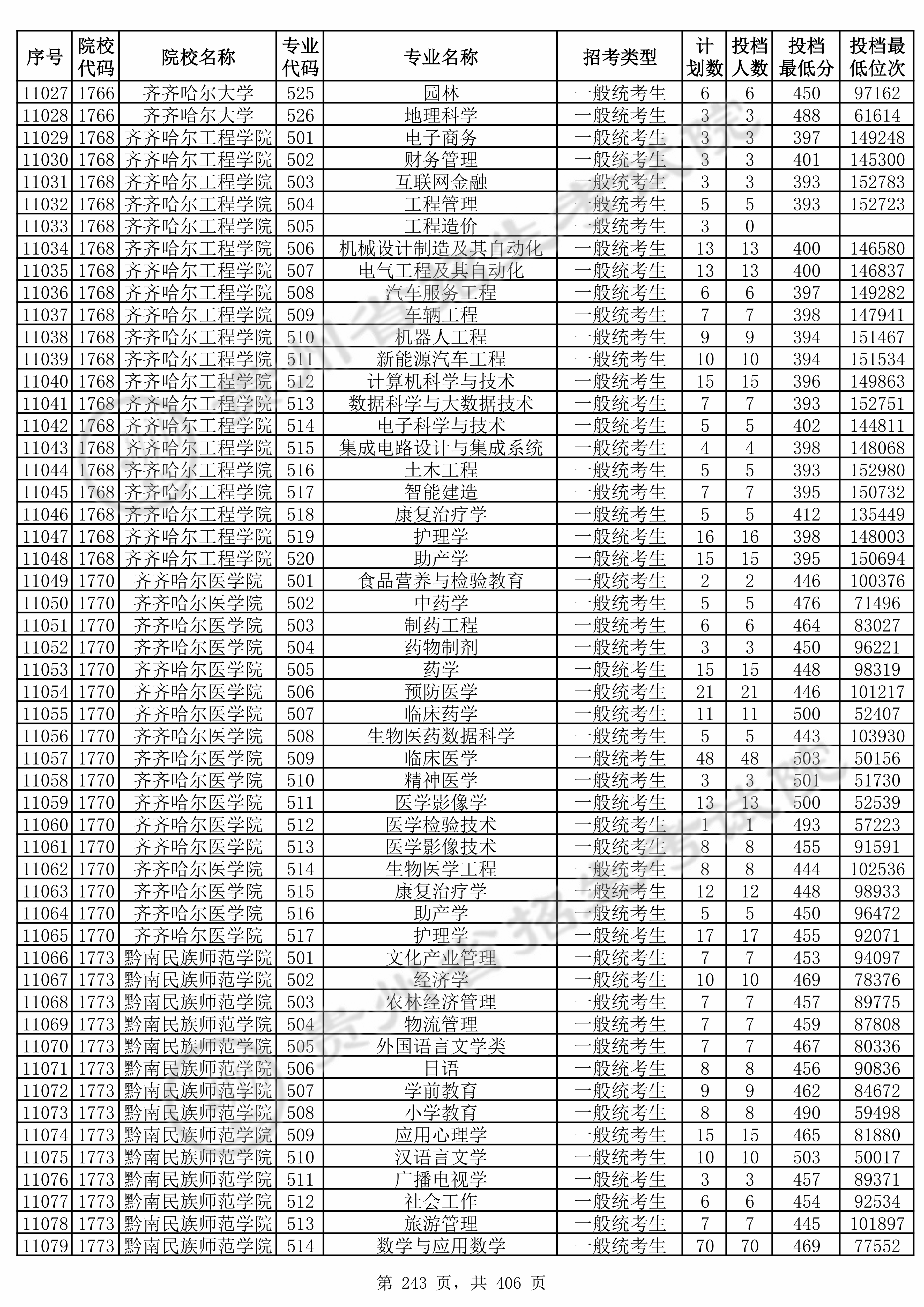2025年贵州高考普通类本科批 齐齐哈尔医学院 的 食品营养与检验教育 专业录取分数溯源信息