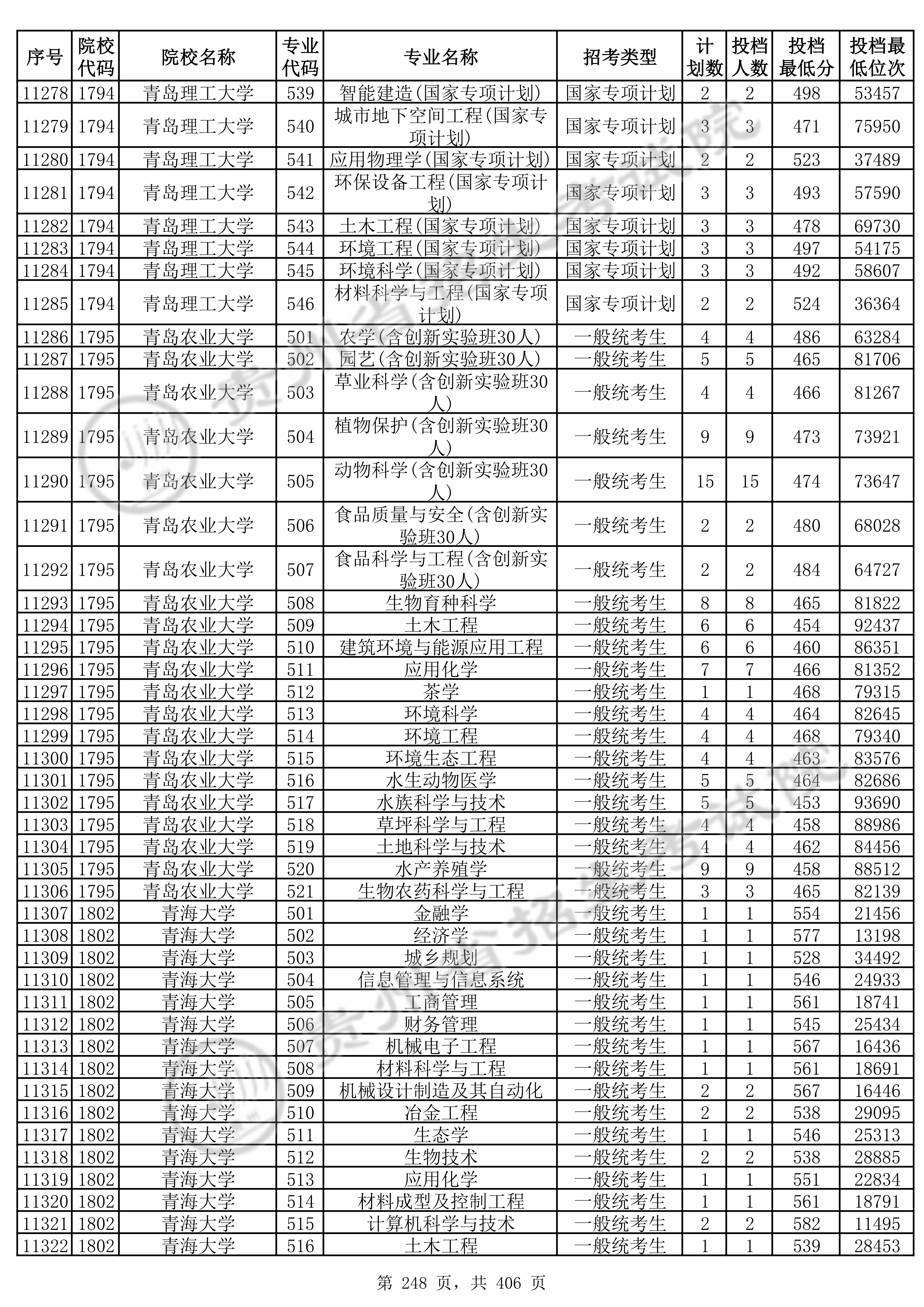 | 院校代码 | 院校名称 | 专业代码 | 专业名称 | 最低分数 | 最低位次 | 专业层次 | 限考科目 | 投档 |