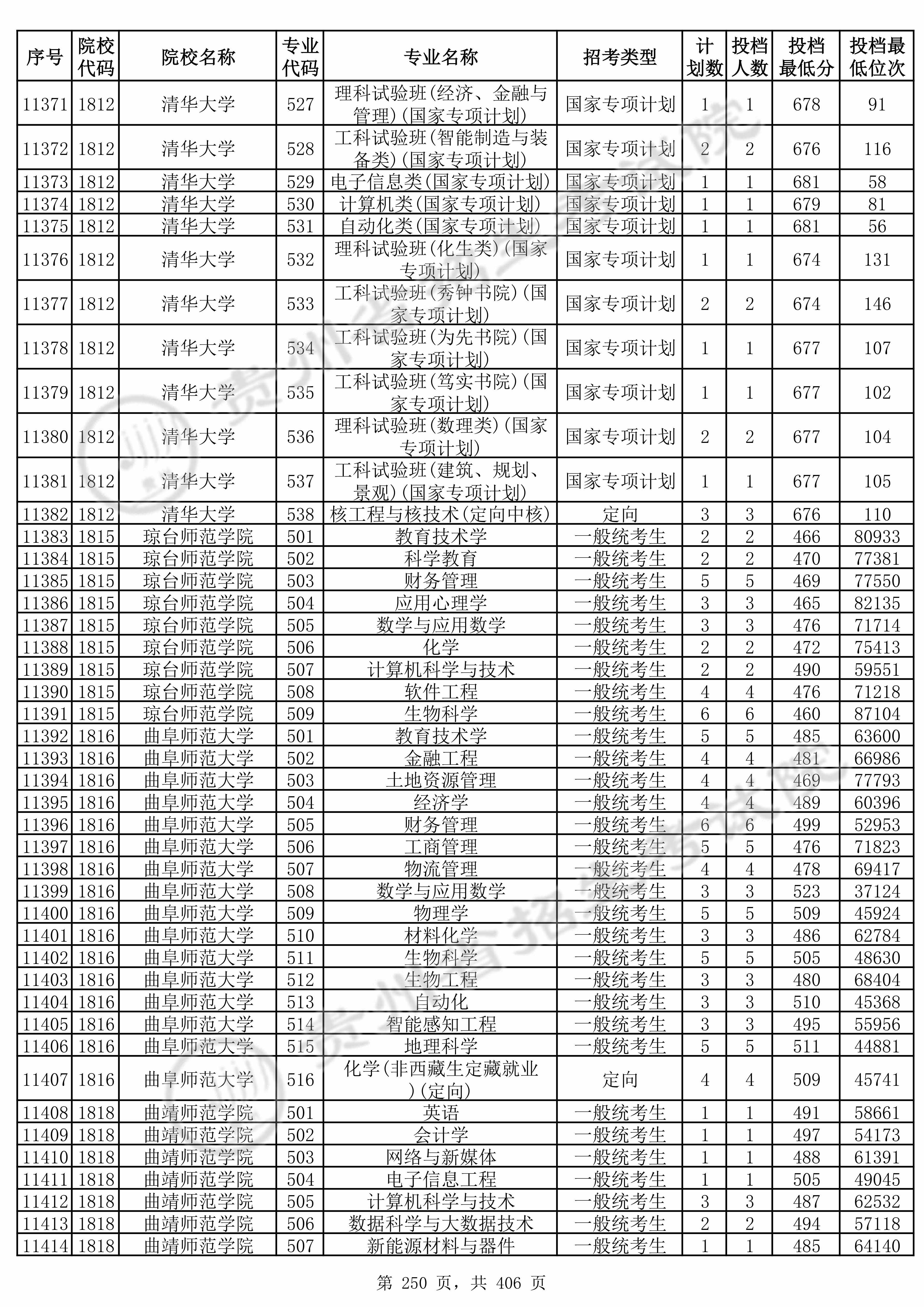 | 1812 | 清华大学 | 536 | 理科试验班(数理类)(国家专项计划) | 677 | 104 | 本科 | 物理 ,再选: 化学 | 1 |