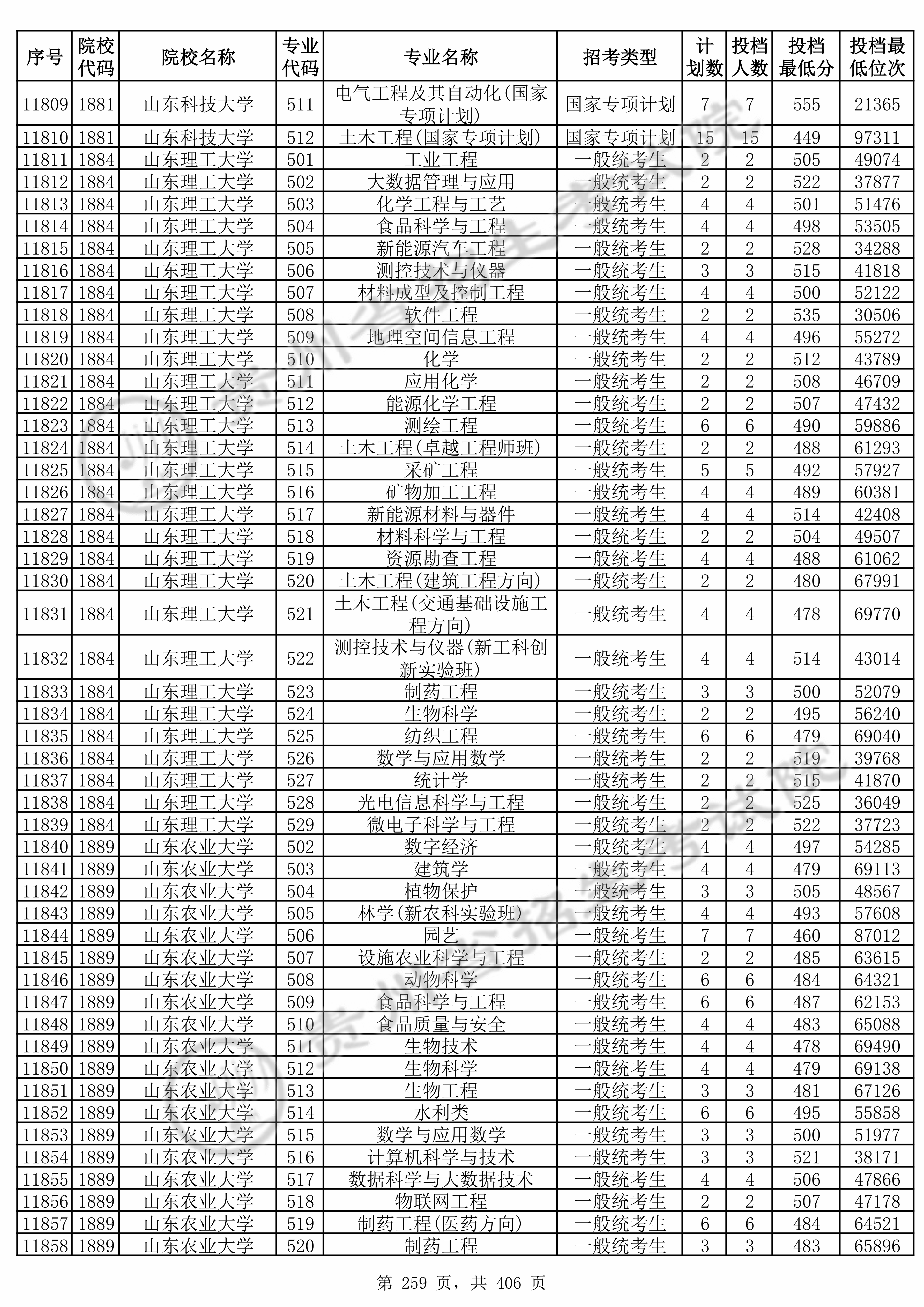 | 院校代码 | 院校名称 | 专业代码 | 专业名称 | 最低分数 | 最低位次 | 专业层次 | 限考科目 | 投档 |