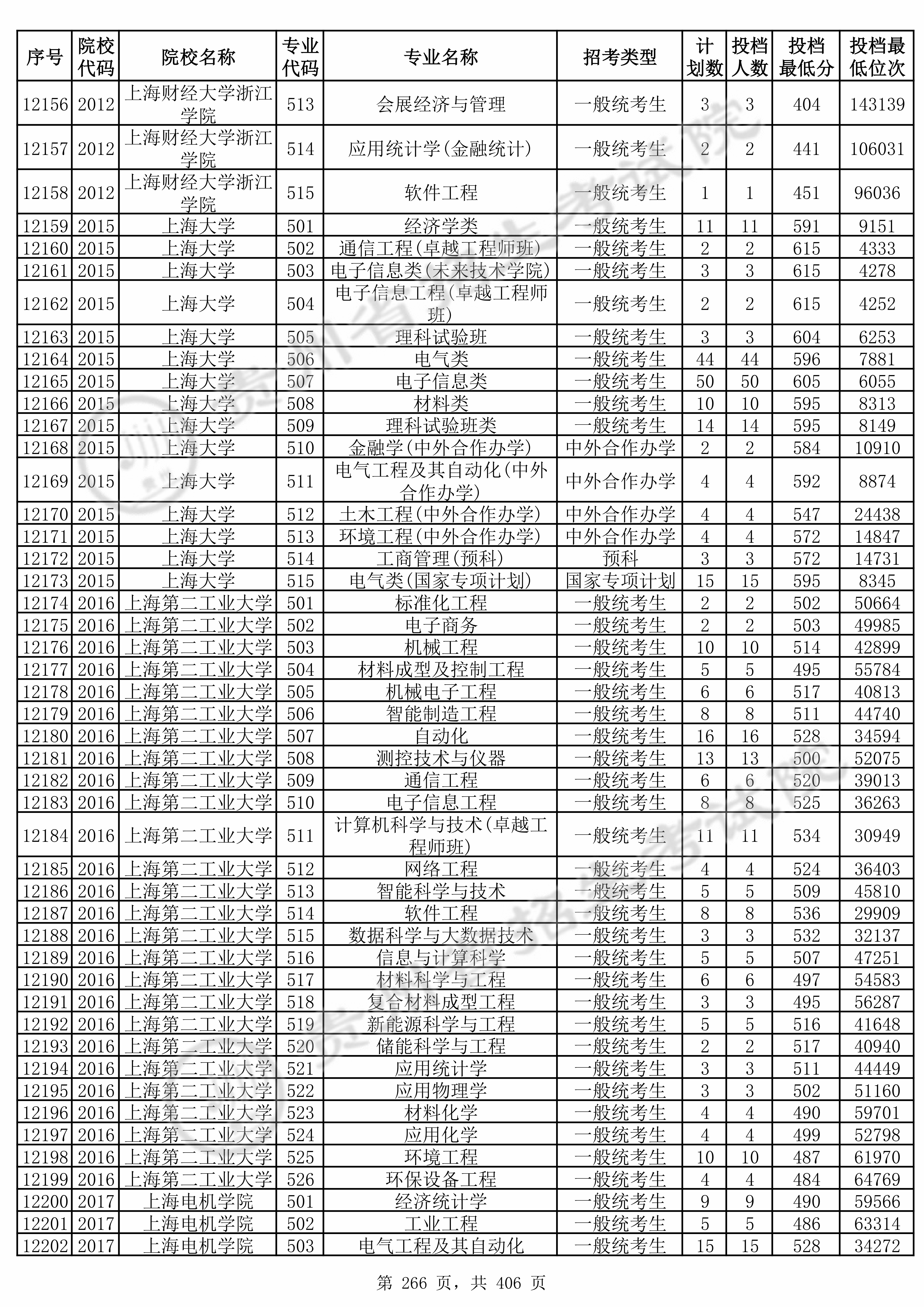 | 2015 | 上海大学 | 504 | 电子信息工程(卓越工程师班) | 615 | 4252 | 本科 | 物理 ,再选: 化学 | 1 |