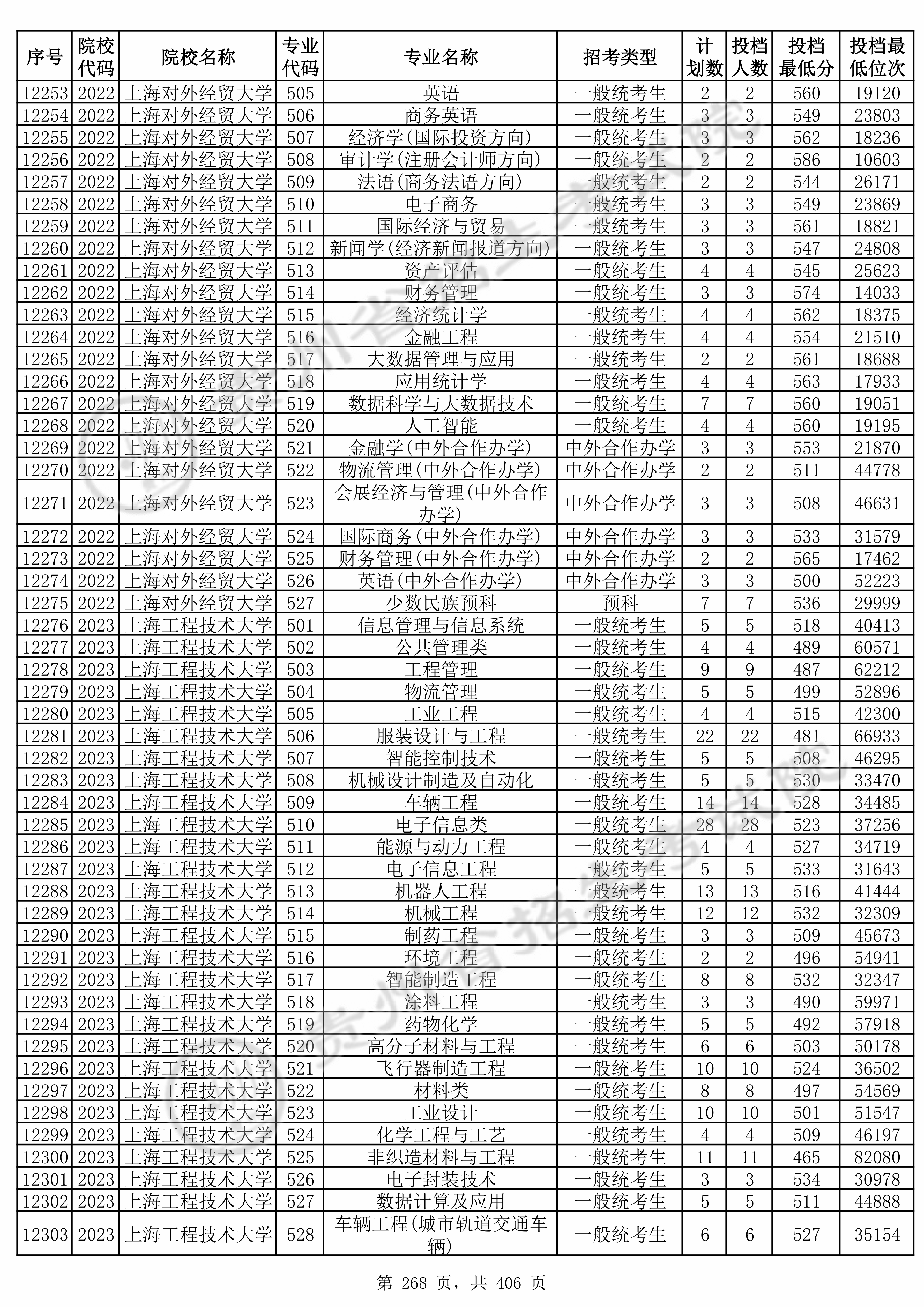 | 院校代码 | 院校名称 | 专业代码 | 专业名称 | 最低分数 | 最低位次 | 专业层次 | 限考科目 | 投档 |
