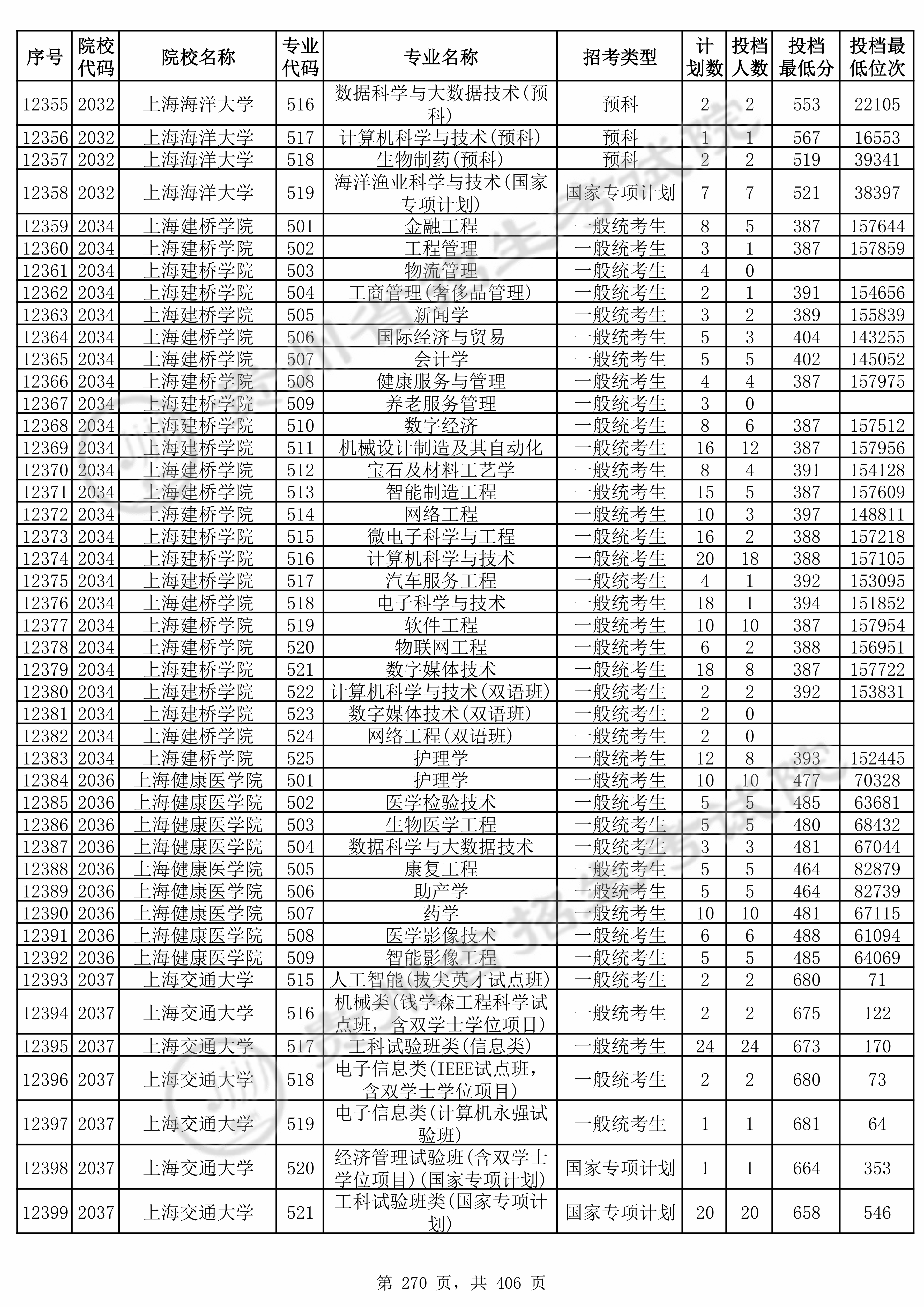 | 院校代码 | 院校名称 | 专业代码 | 专业名称 | 最低分数 | 最低位次 | 专业层次 | 限考科目 | 投档 |