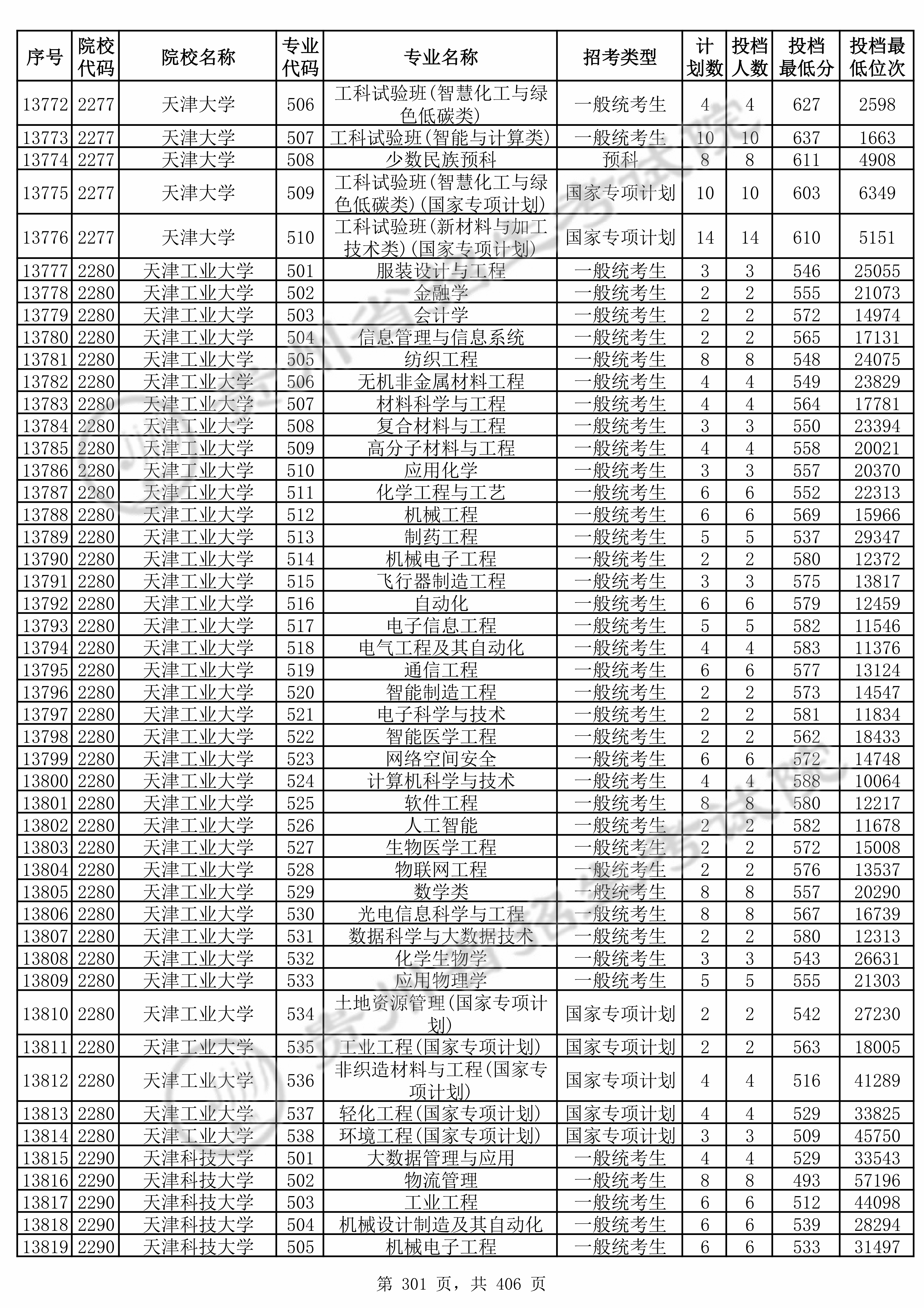 | 2280 | 天津工业大学 | 511 | 化学工程与工艺 | 552 | 22313 | 本科 | 物理 ,再选: 化学 | 1 |