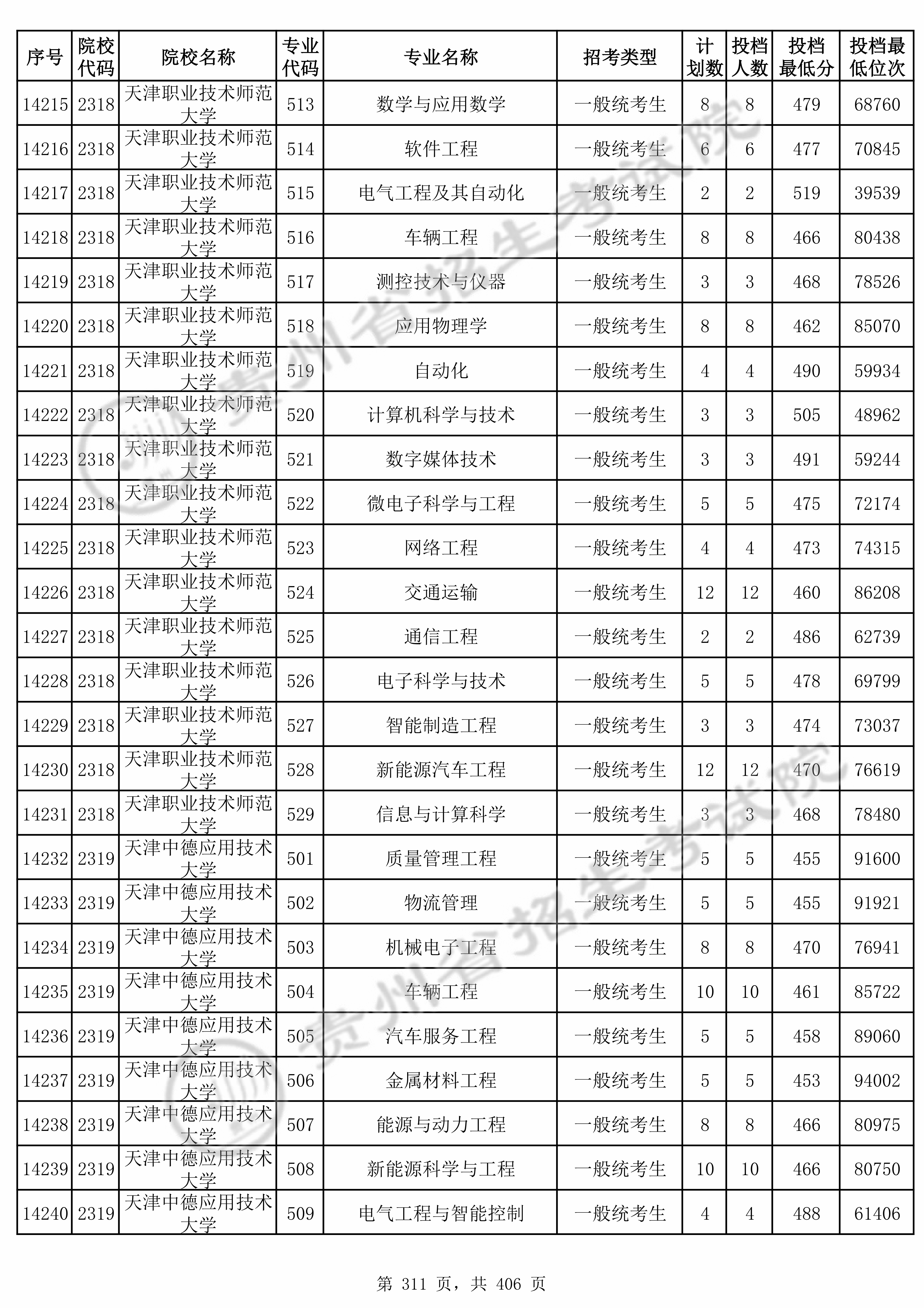 | 2318 | 天津职业技术师范大学 | 521 | 数字媒体技术 | 491 | 59244 | 本科 | 物理 ,再选: 化学 | 1 |