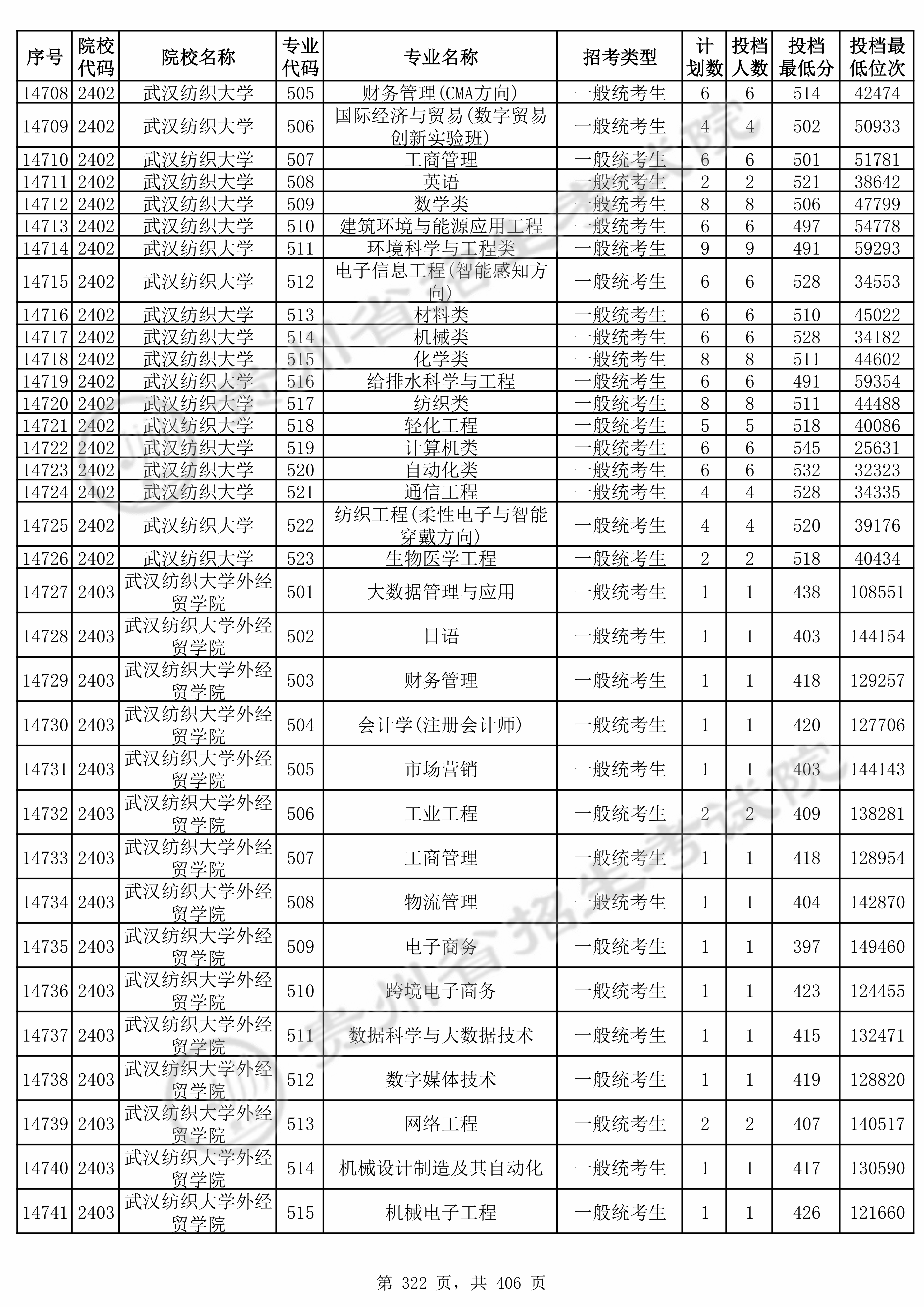 | 2402 | 武汉纺织大学 | 515 | 化学类 | 511 | 44602 | 本科 | 物理 ,再选: 化学 | 1 |