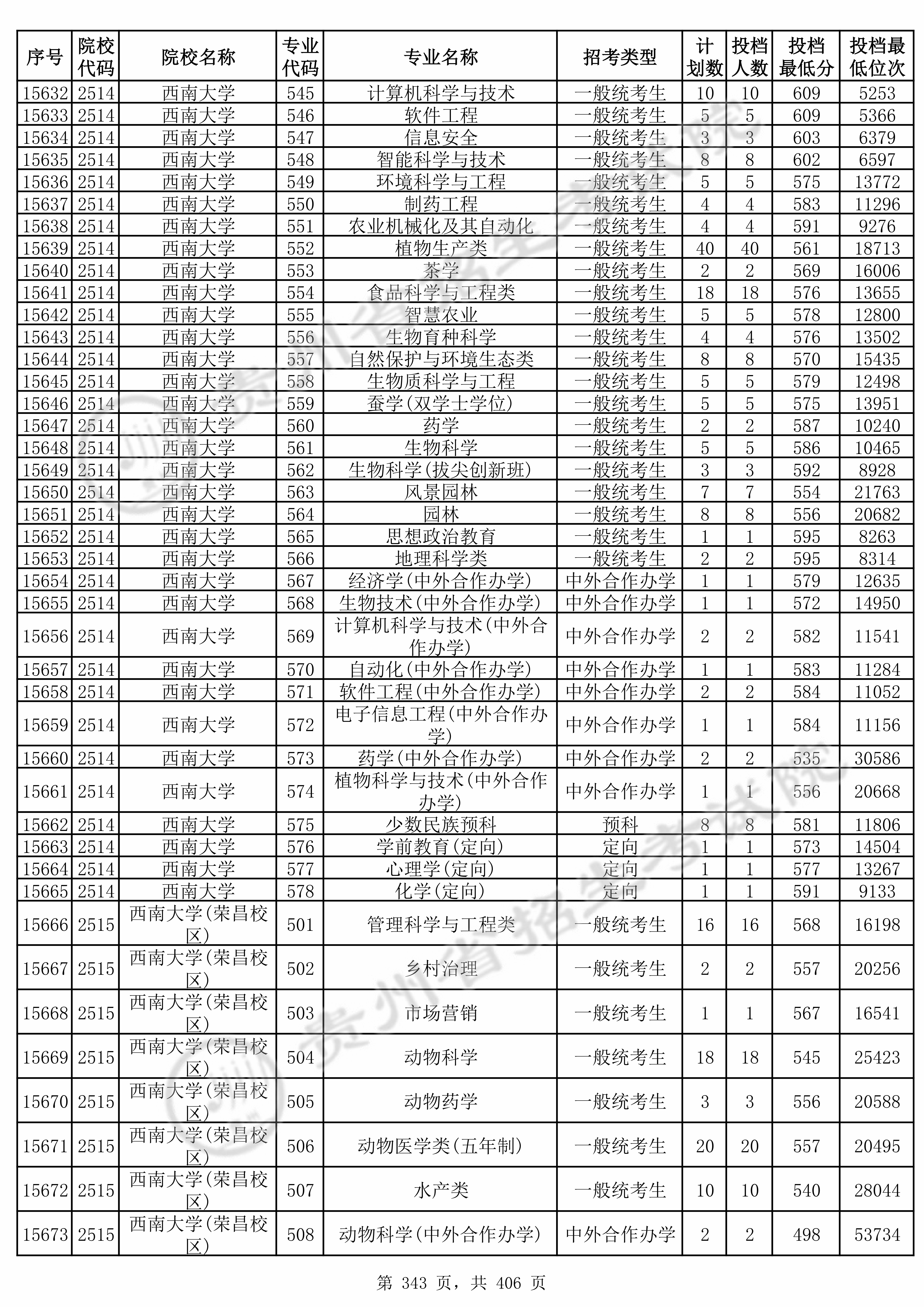 2025年贵州高考普通类本科批 西南大学 的 农业机械化及其自动化 专业录取分数溯源信息