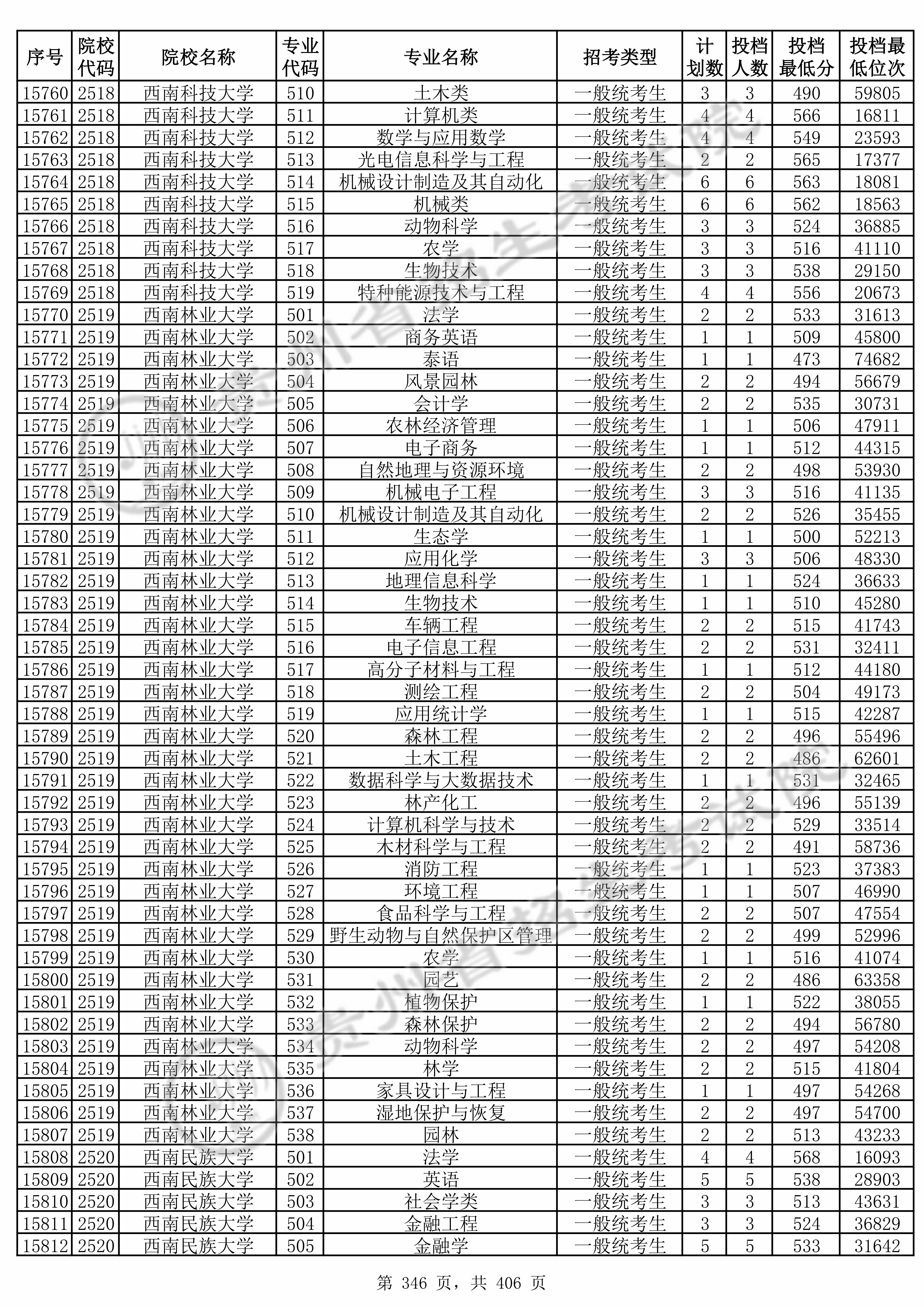 | 院校代码 | 院校名称 | 专业代码 | 专业名称 | 最低分数 | 最低位次 | 专业层次 | 限考科目 | 投档 |