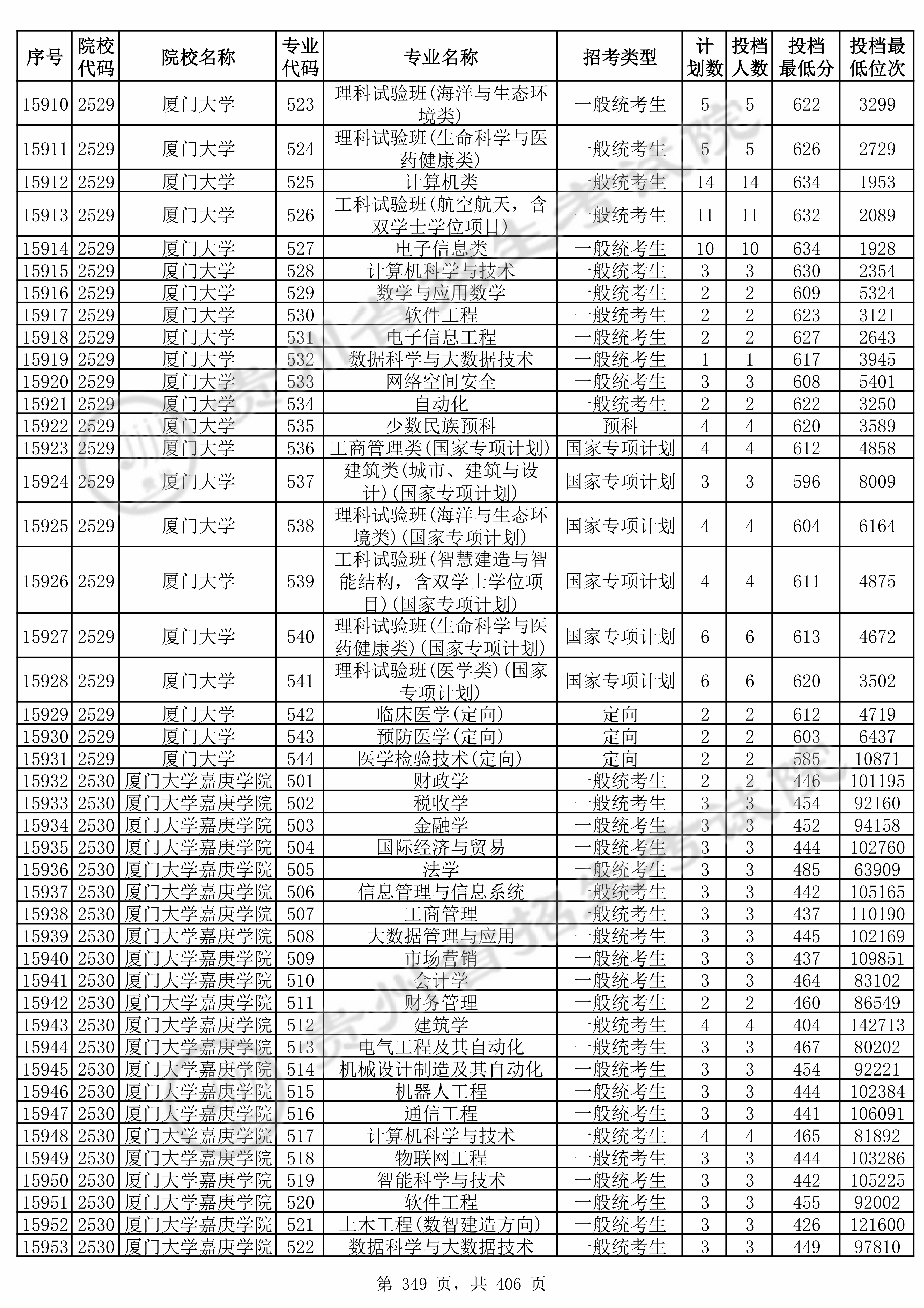 | 2529 | 厦门大学 | 541 | 理科试验班(医学类)(国家专项计划) | 620 | 3502 | 本科 | 物理 ,再选: 化学 | 1 |