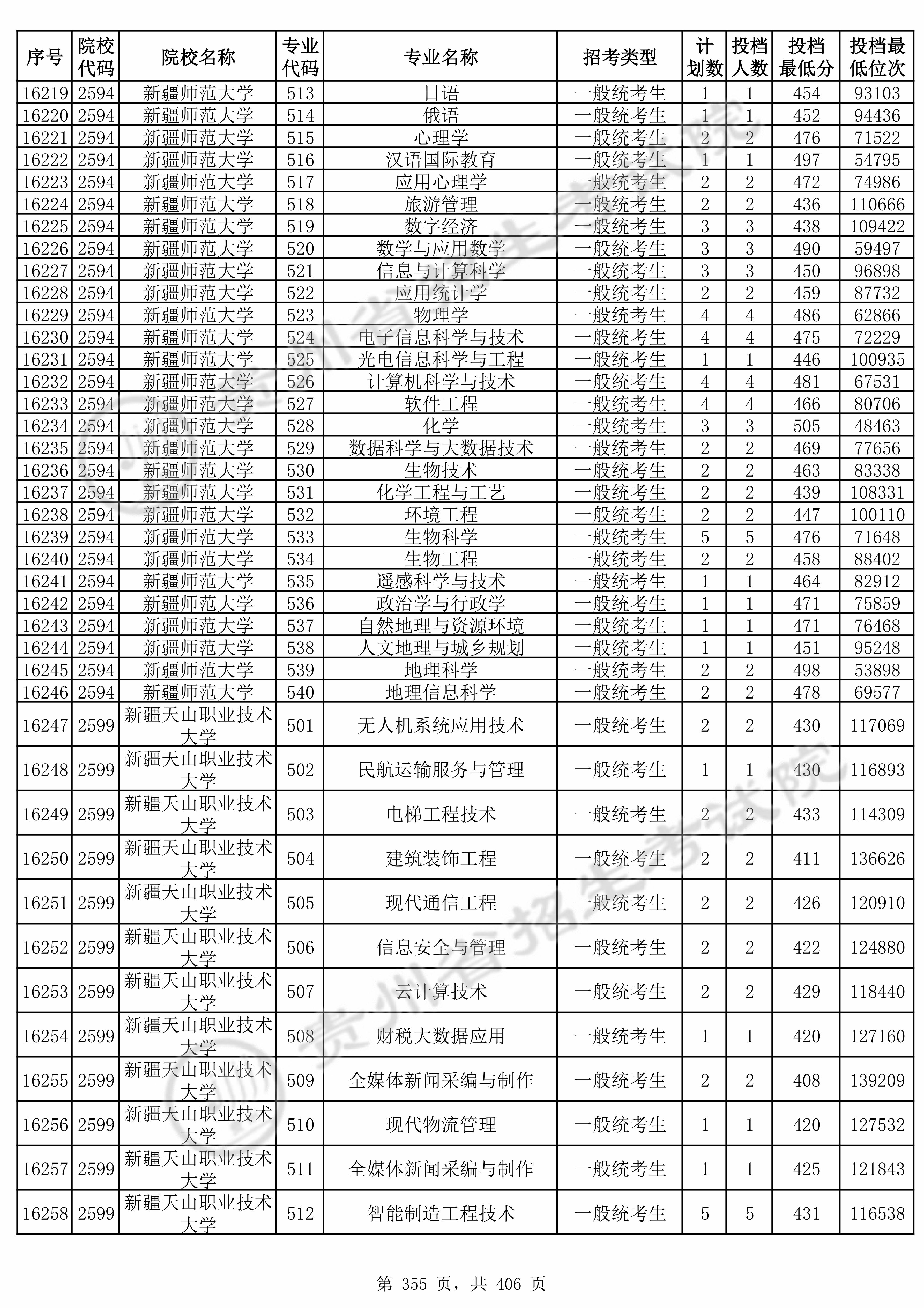 | 2594 | 新疆师范大学 | 533 | 生物科学 | 476 | 71648 | 本科 | 物理 ,再选: 化学 | 1 |