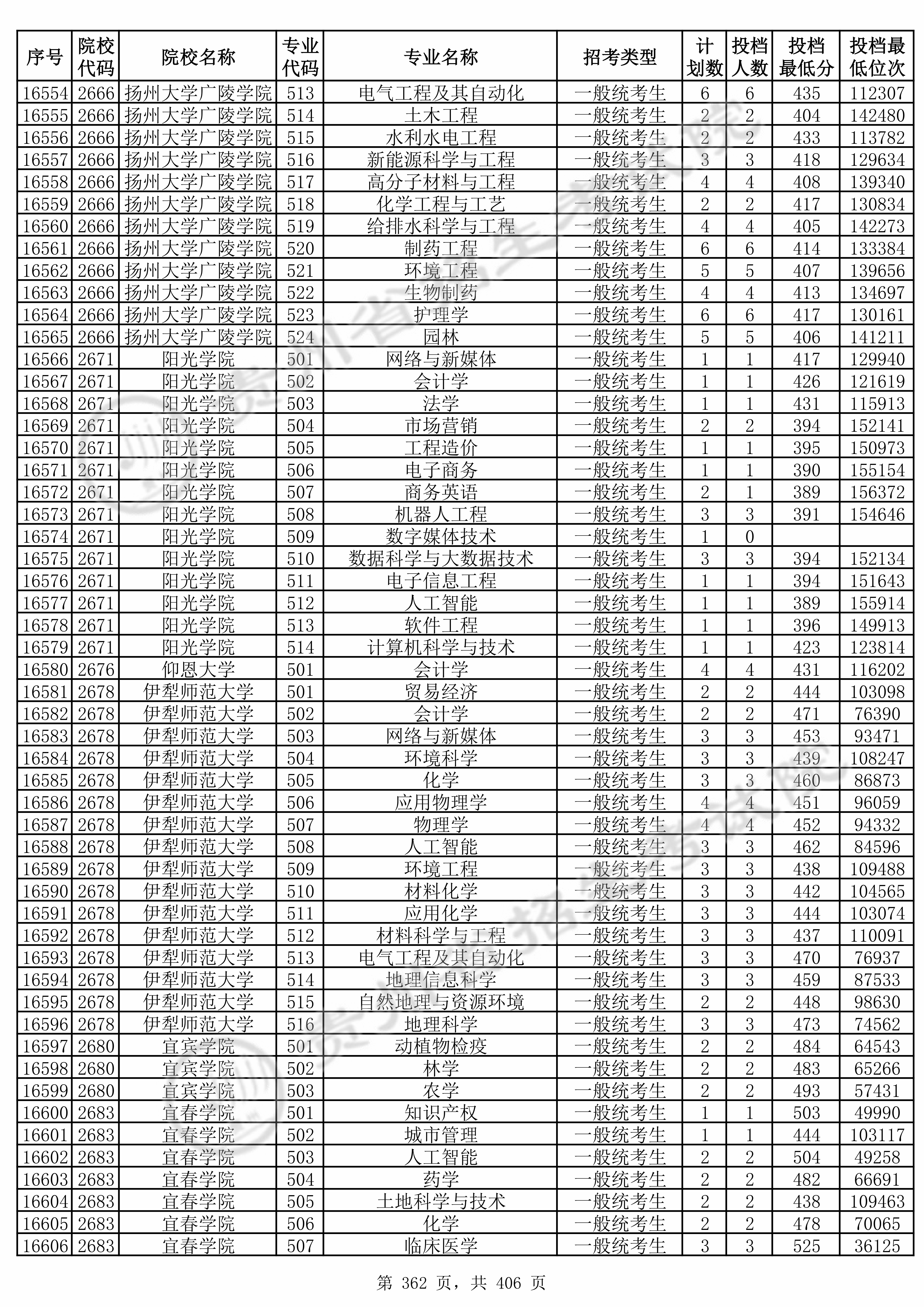 全部专业投档情况