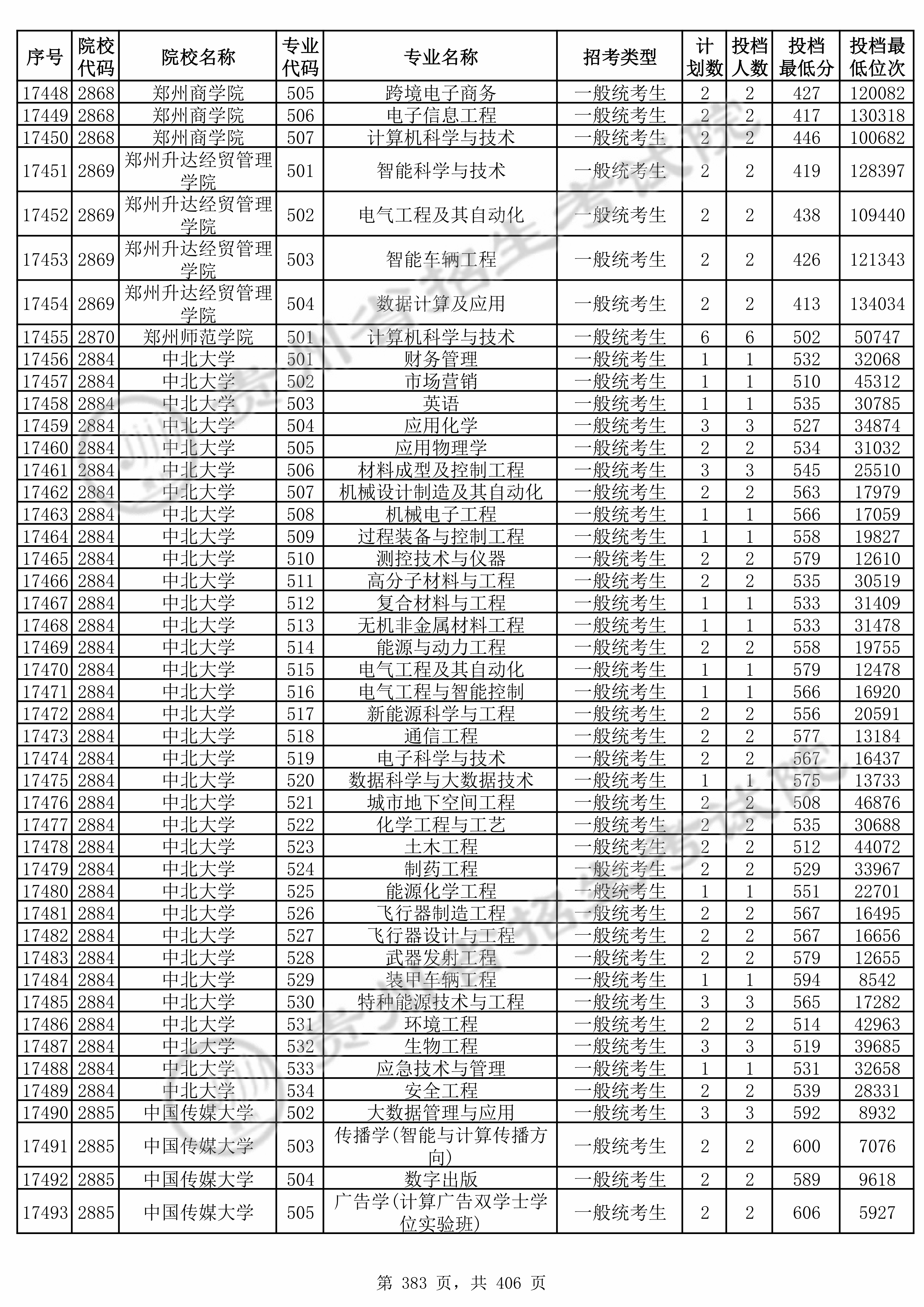 | 2869 | 郑州升达经贸管理学院 | 501 | 智能科学与技术 | 419 | 128397 | 本科 | 物理 ,再选: 化学 | 1 |