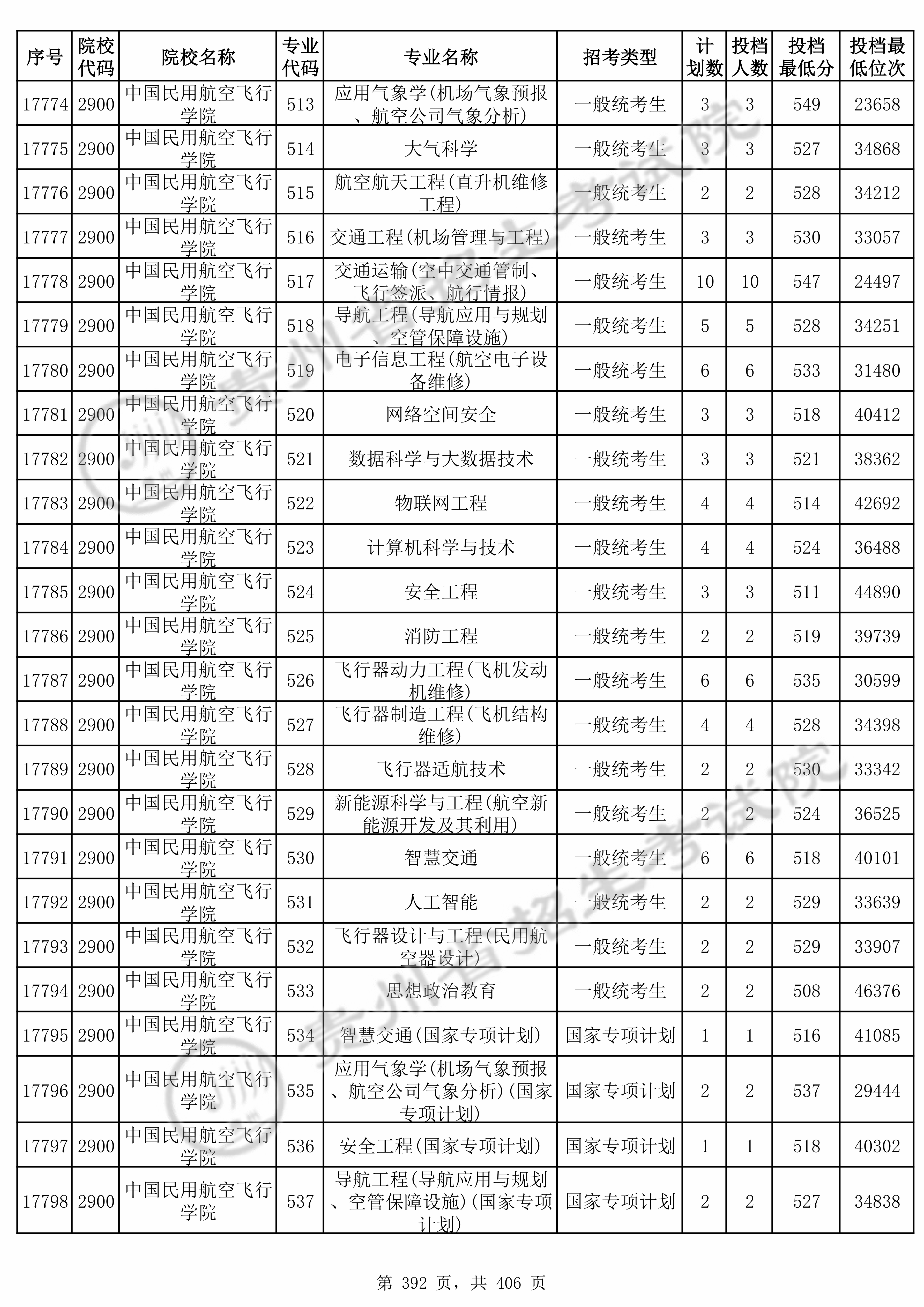 | 2900 | 中国民用航空飞行学院 | 521 | 数据科学与大数据技术 | 521 | 38362 | 本科 | 物理 ,再选: 化学 | 1 |