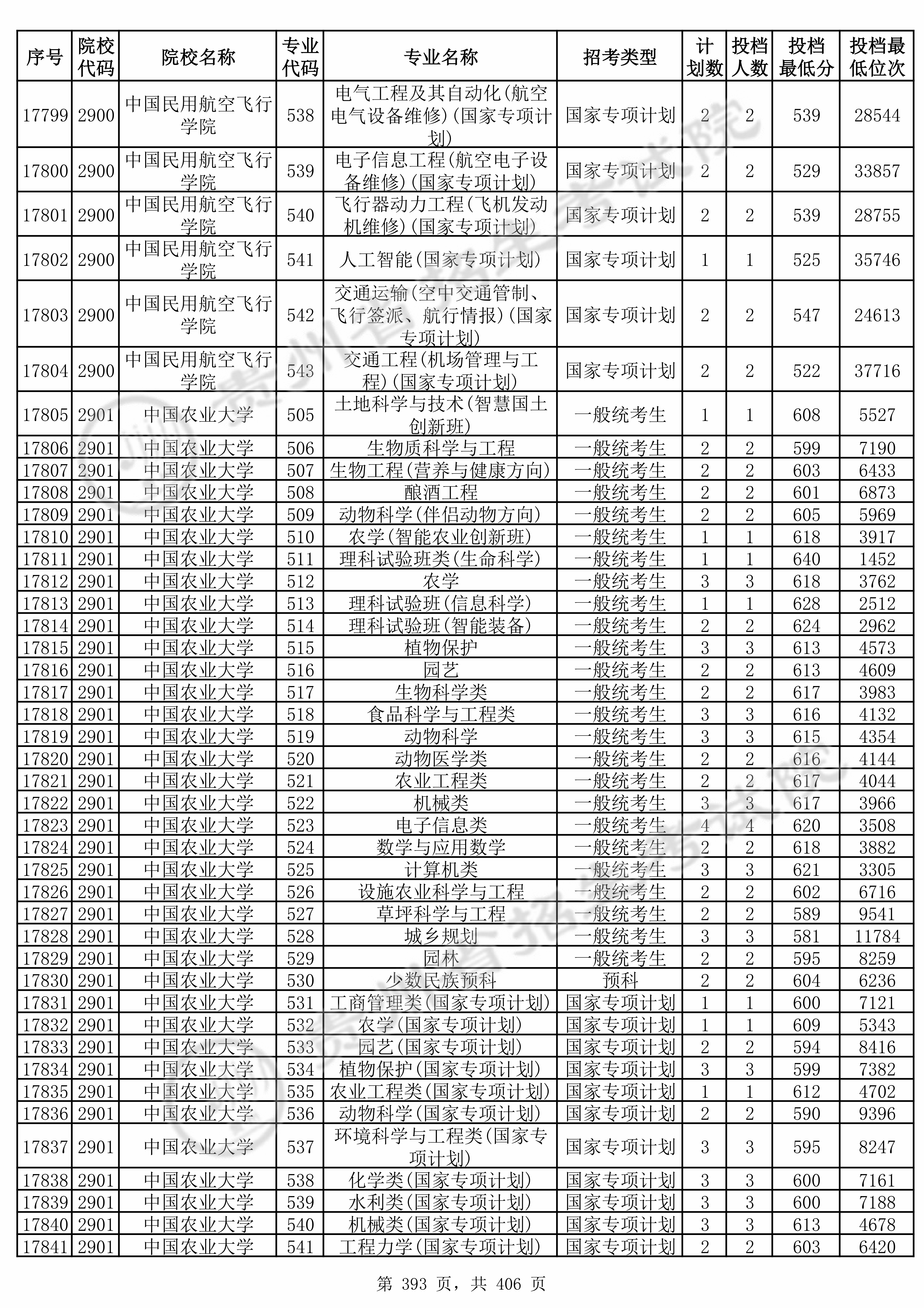 | 2901 | 中国农业大学 | 511 | 理科试验班类(生命科学) | 640 | 1452 | 本科 | 物理 ,再选: 化学 | 1 |