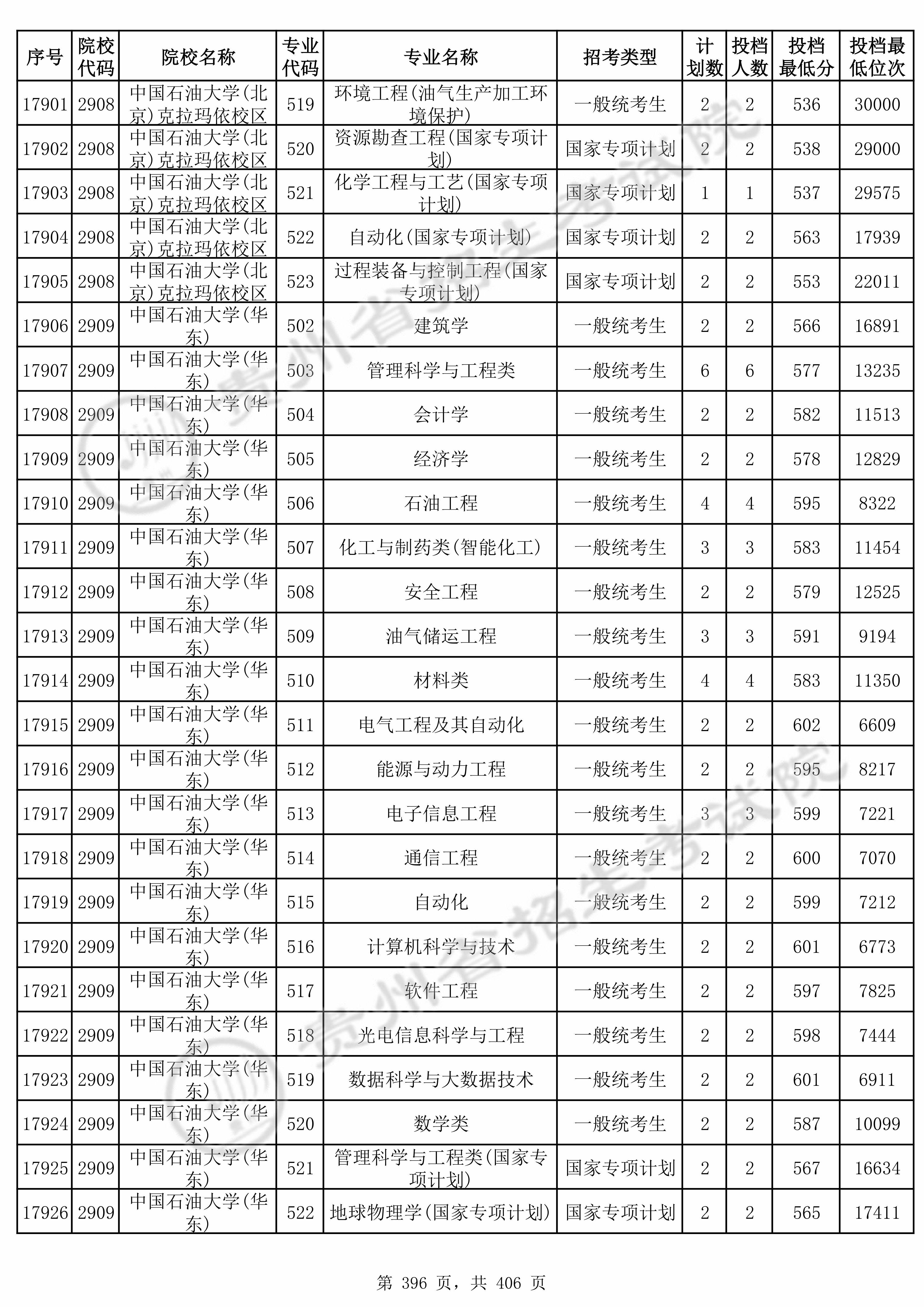 | 2908 | 中国石油大学(北京)克拉玛依校区 | 522 | 自动化(国家专项计划) | 563 | 17939 | 本科 | 物理 ,再选: 化学 | 1 |
