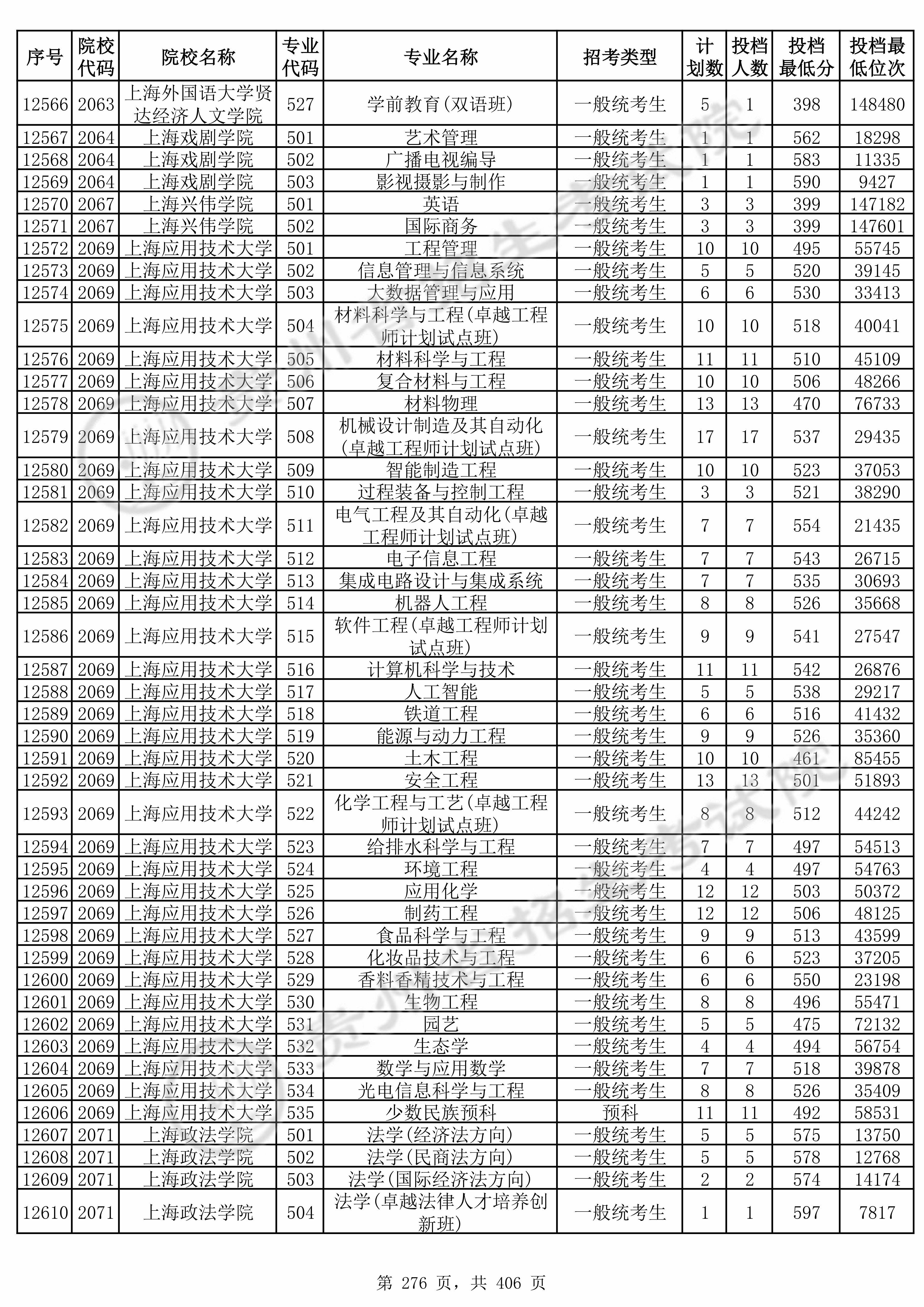 招生代码 | 大学名称 | 专业名称 | 最低分数 | 最低位次 | 专业层次 | 限考科目 | 投档 |