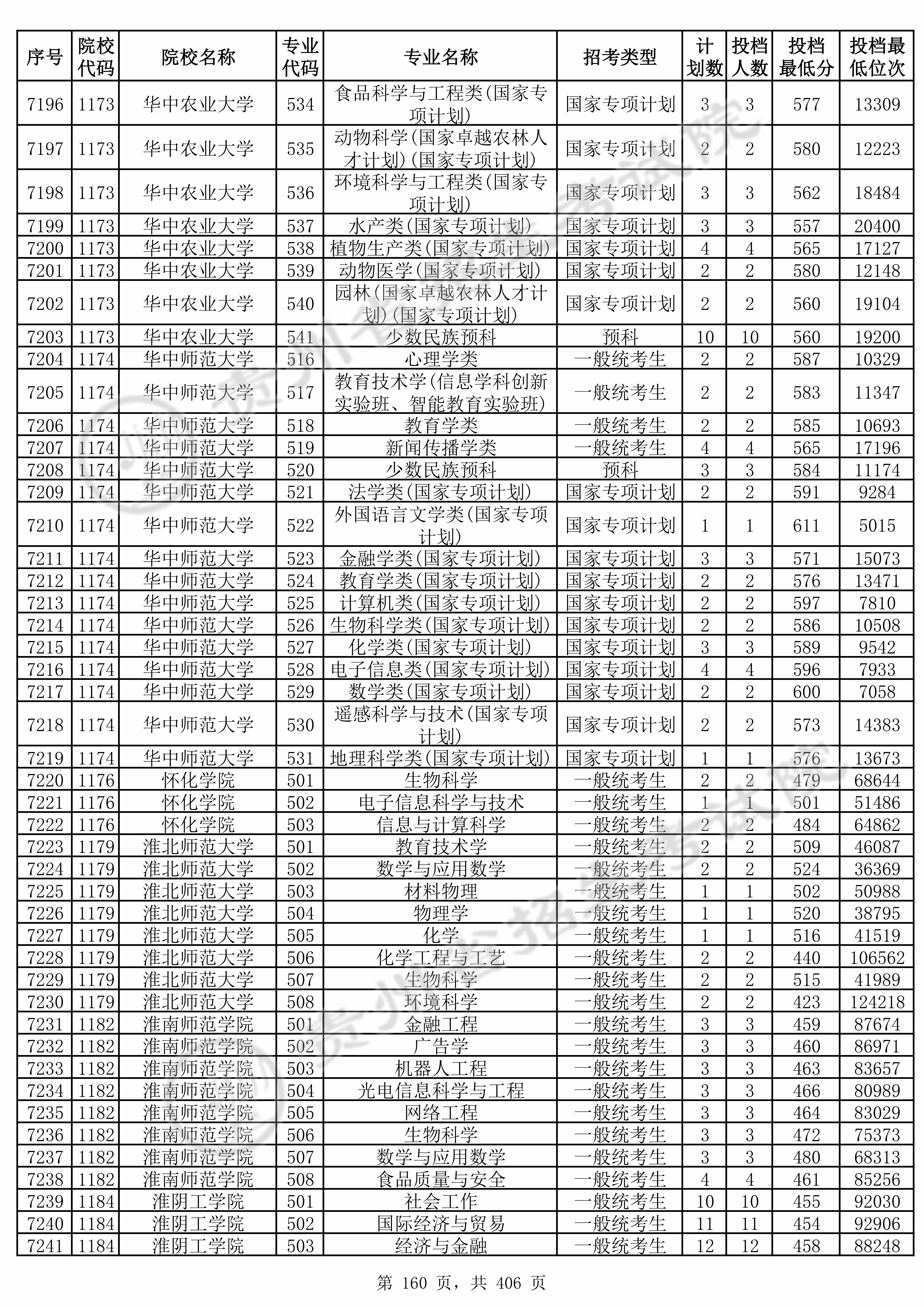 招生代码 | 大学名称 | 专业名称 | 最低分数 | 最低位次 | 专业层次 | 限考科目 | 投档 |