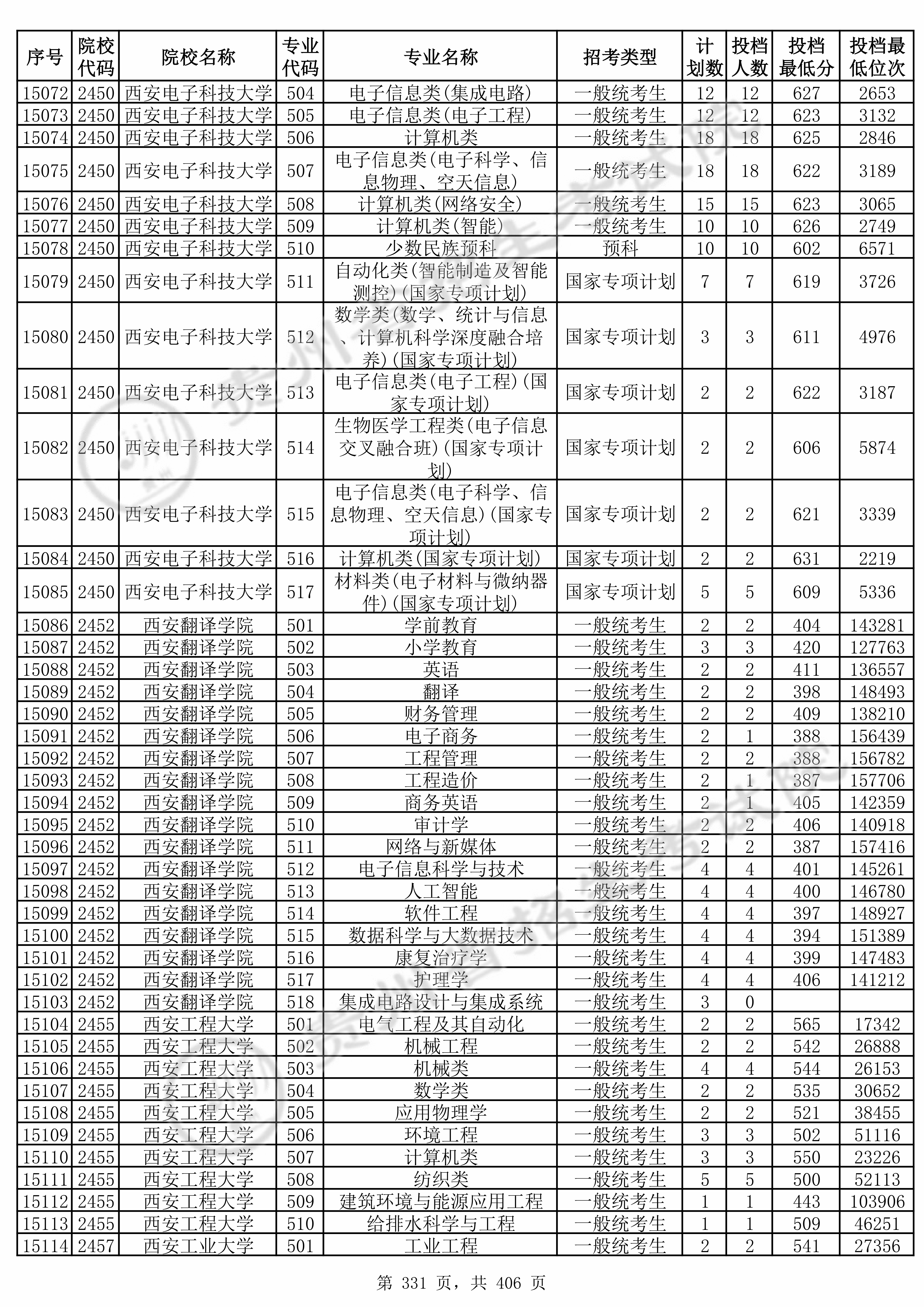 2025年贵州高考普通类本科批 西安电子科技大学 的 电子信息类 专业录取分数溯源信息