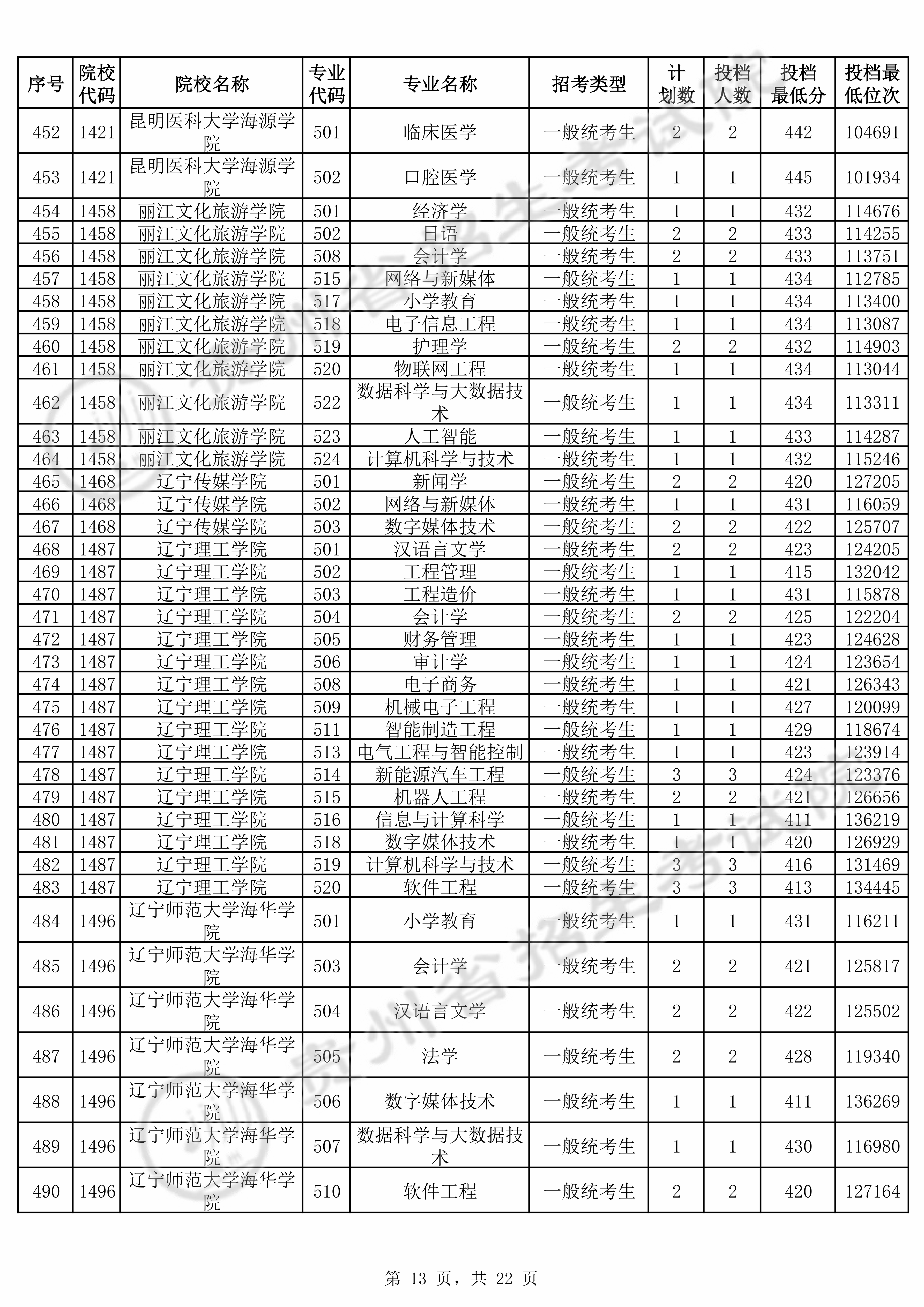 普通类本科批 第1次征集志愿投档录取原格式数据 |