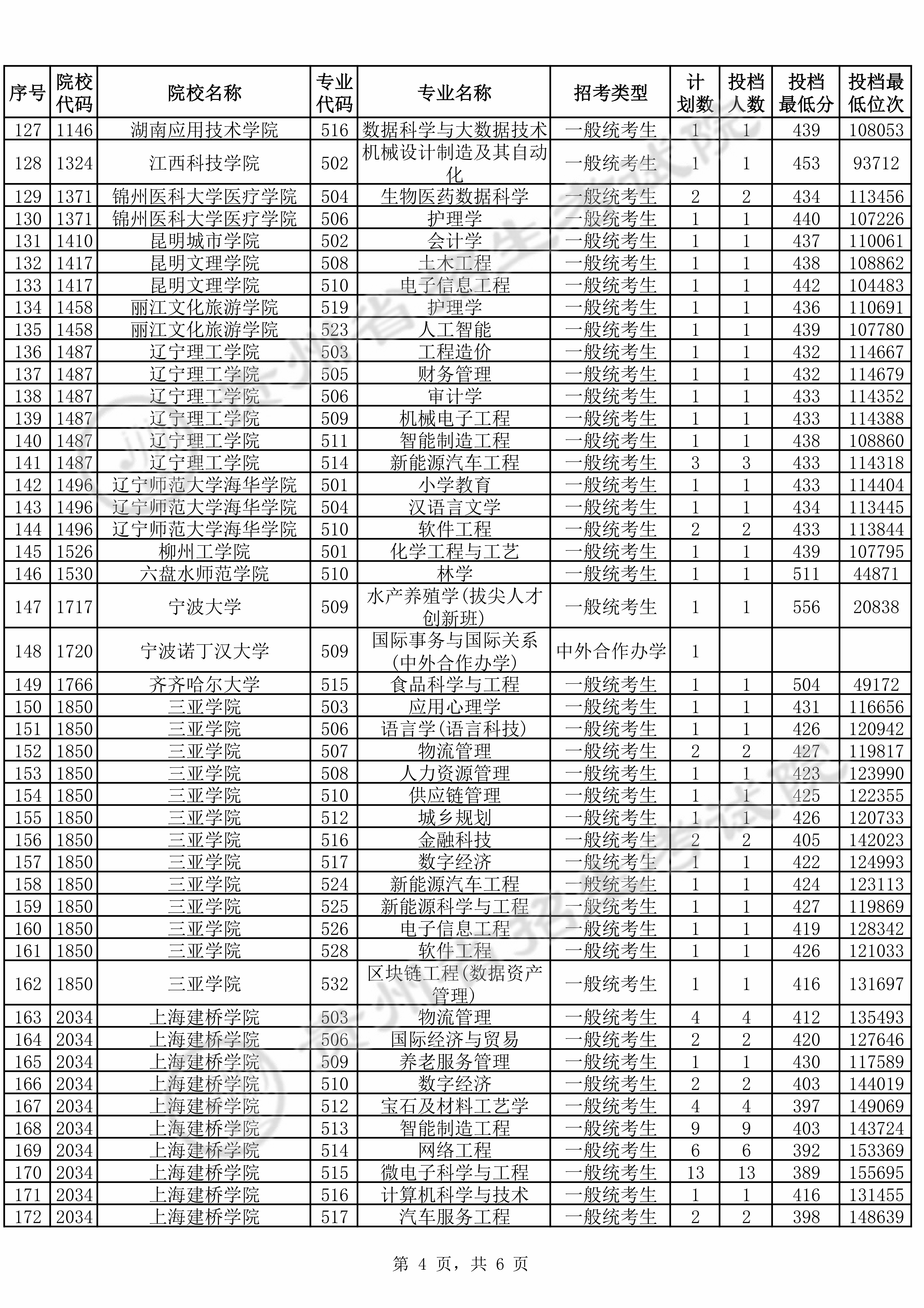 招生代码 | 大学名称 | 专业名称 | 最低分数 | 最低位次 | 专业层次 | 限考科目 | 投档 |