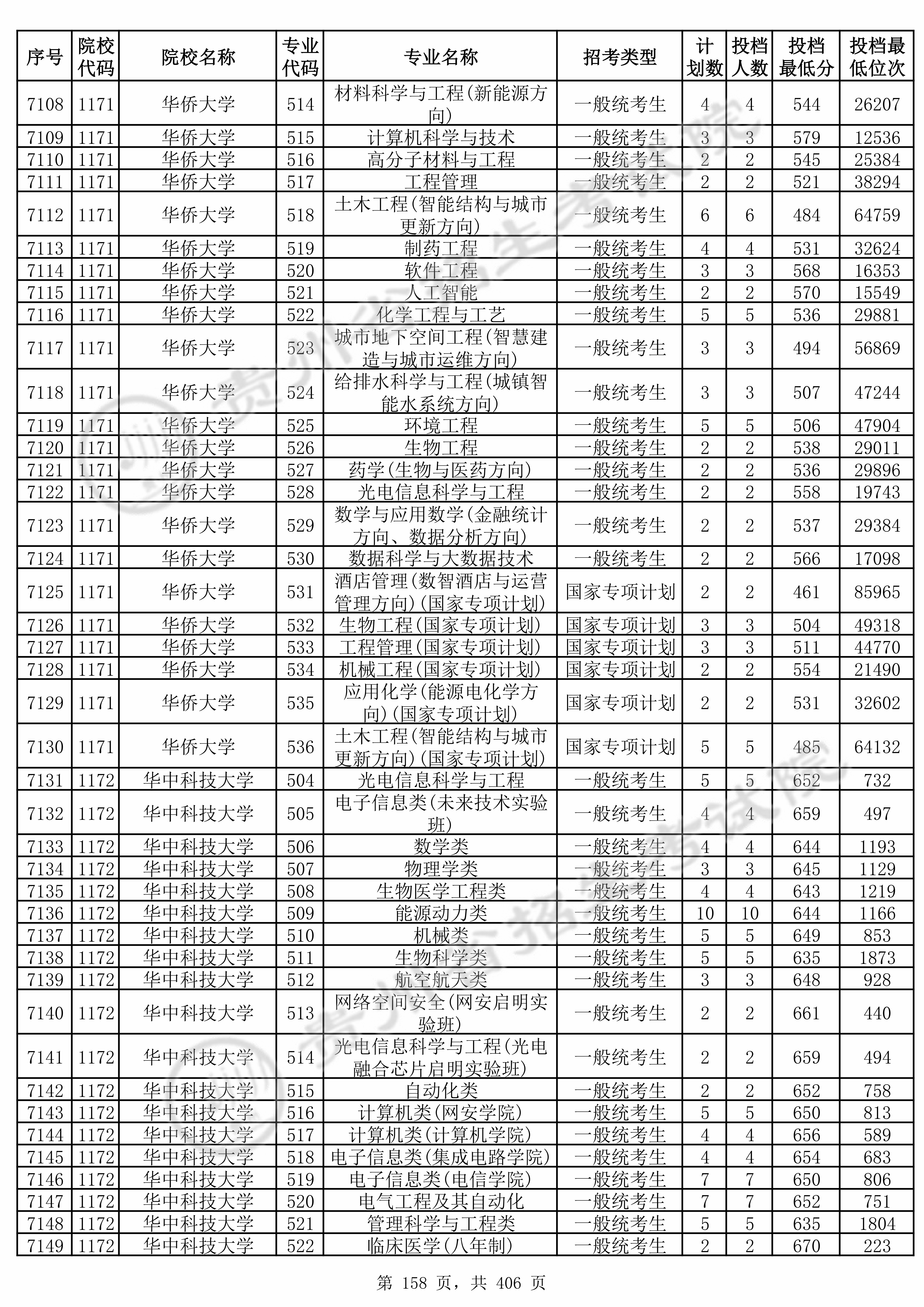2025年贵州高考普通类本科批 华侨大学 的 计算机科学与技术 专业录取分数溯源信息