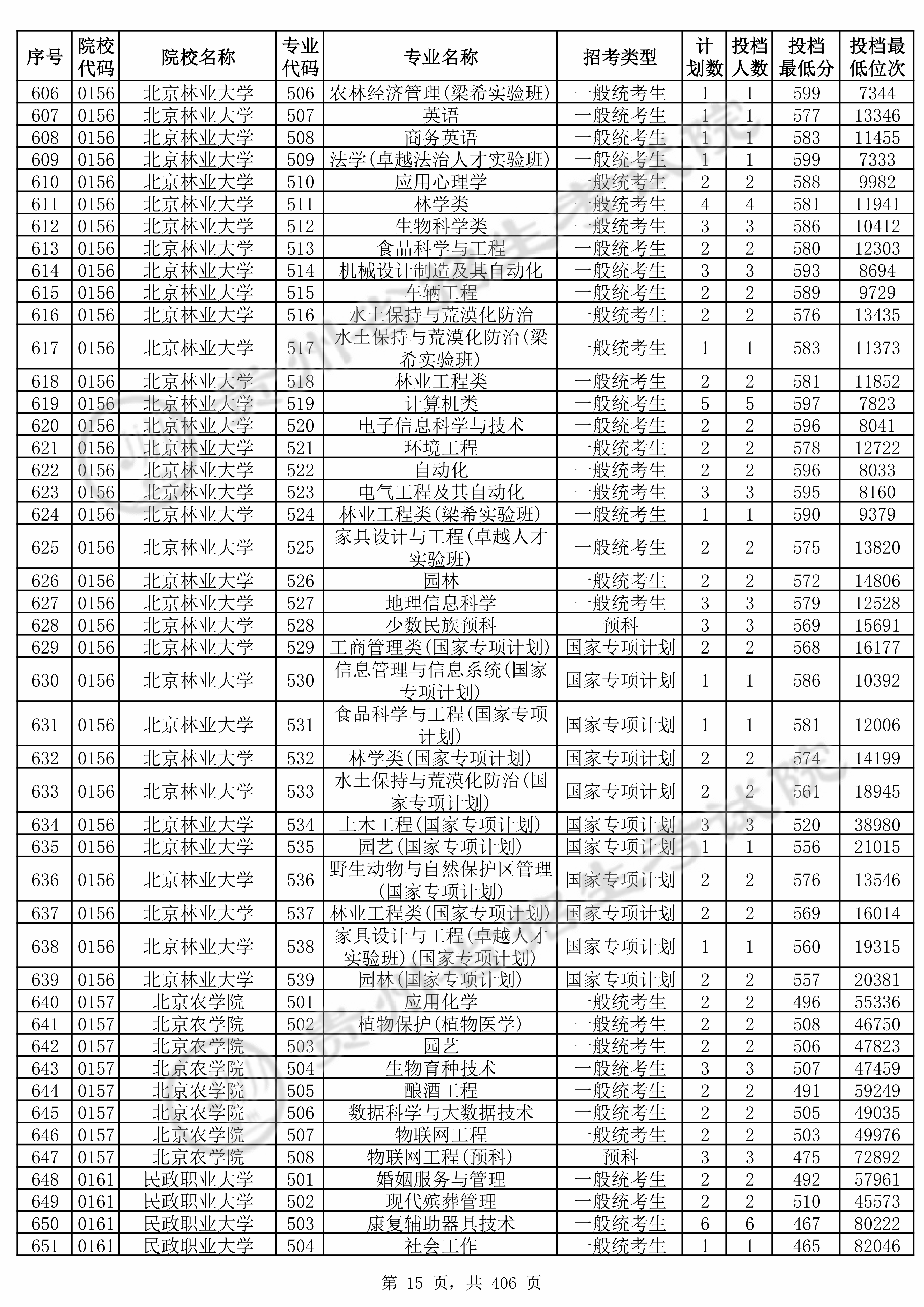 招生代码 | 大学名称 | 专业名称 | 最低分数 | 最低位次 | 专业层次 | 限考科目 | 投档 |