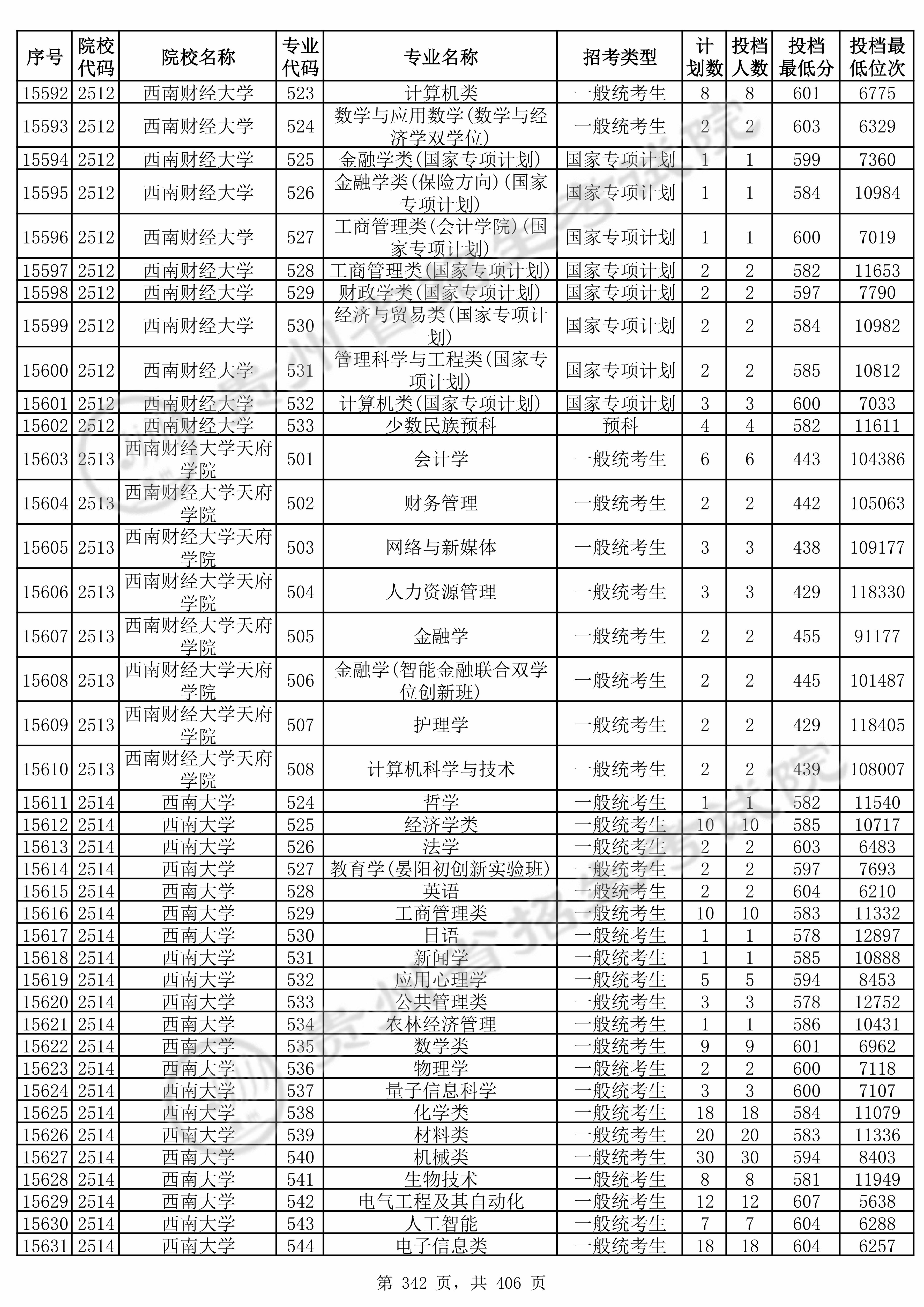 2025年贵州高考普通类本科批 西南财经大学 的 金融学类 专业录取分数溯源信息