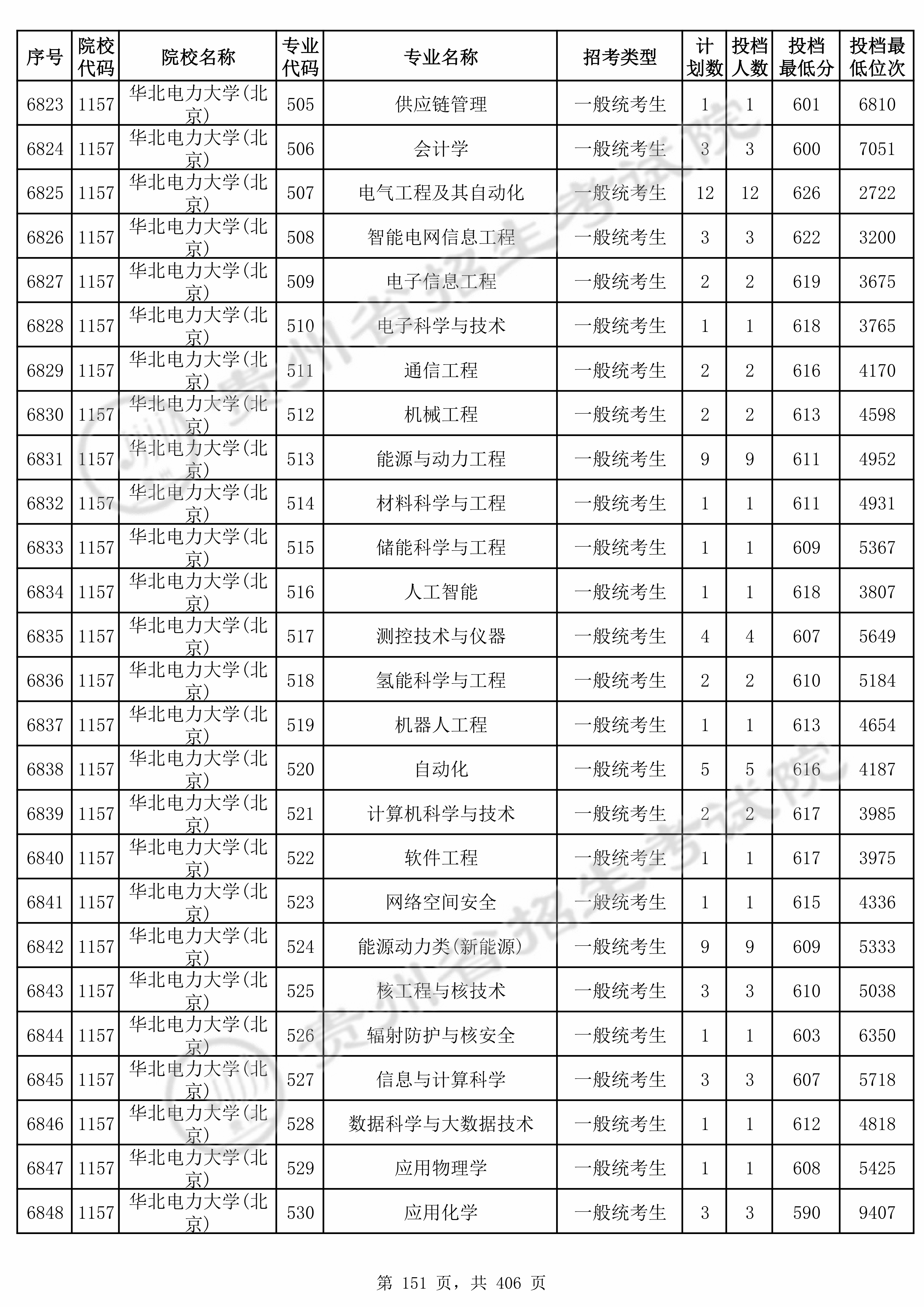 2025年贵州高考普通类本科批 华北电力大学(北京) 的 核工程与核技术 专业录取分数溯源信息