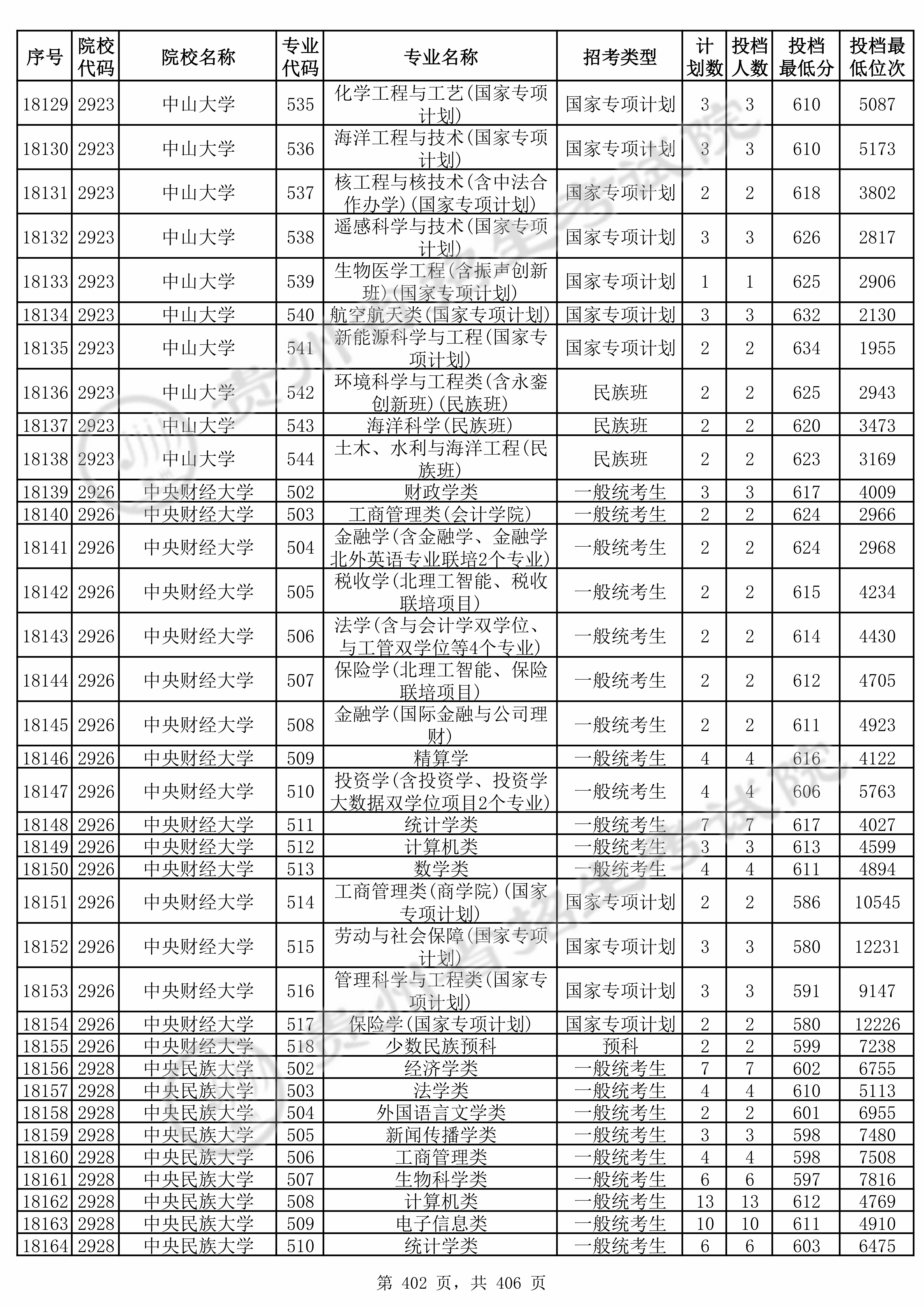 2025年贵州高考普通类本科批 中山大学 的 海洋科学 专业录取分数溯源信息