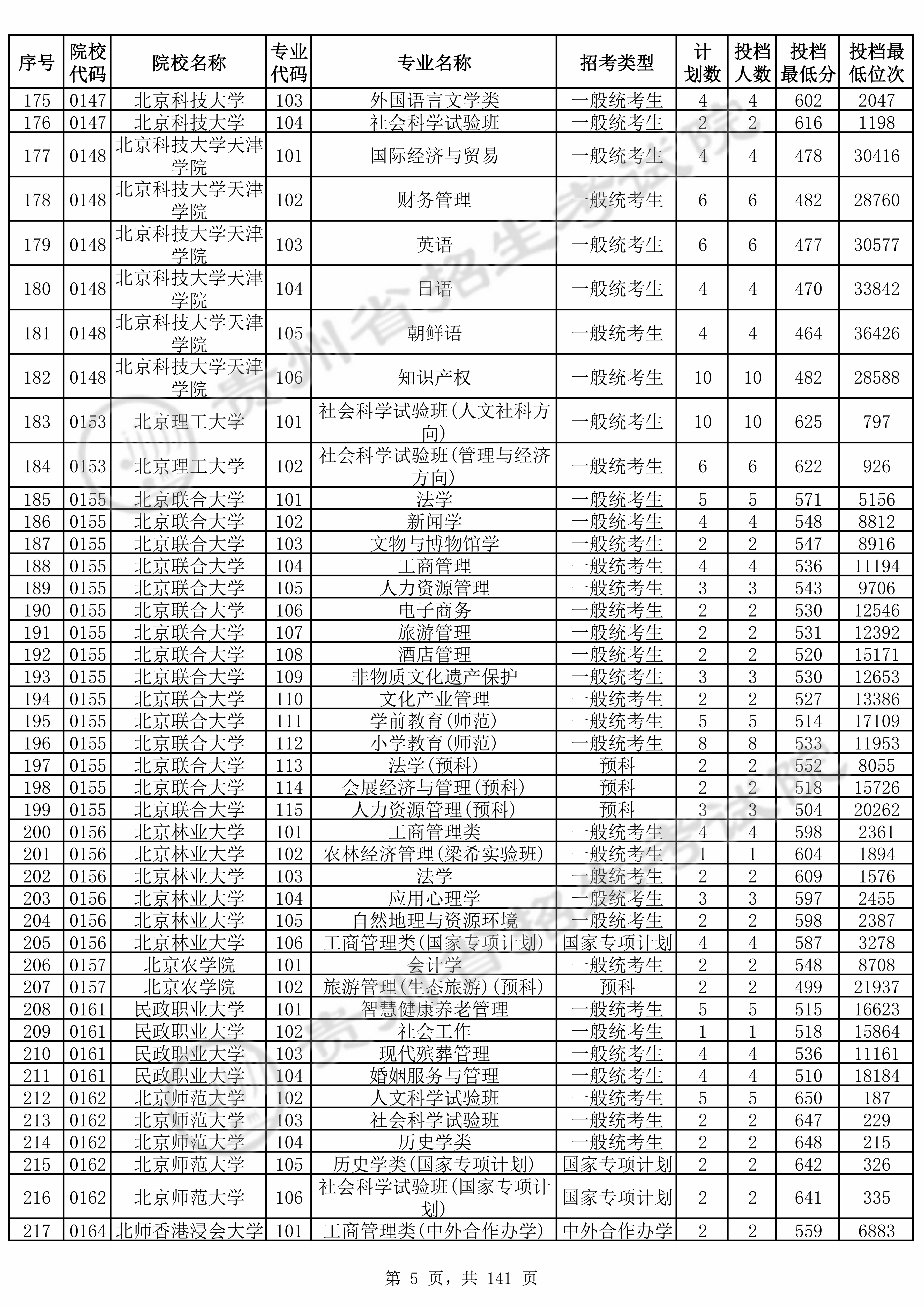 2025年贵州高考普通类本科批 北京科技大学天津学院 的 英语 专业录取分数溯源信息