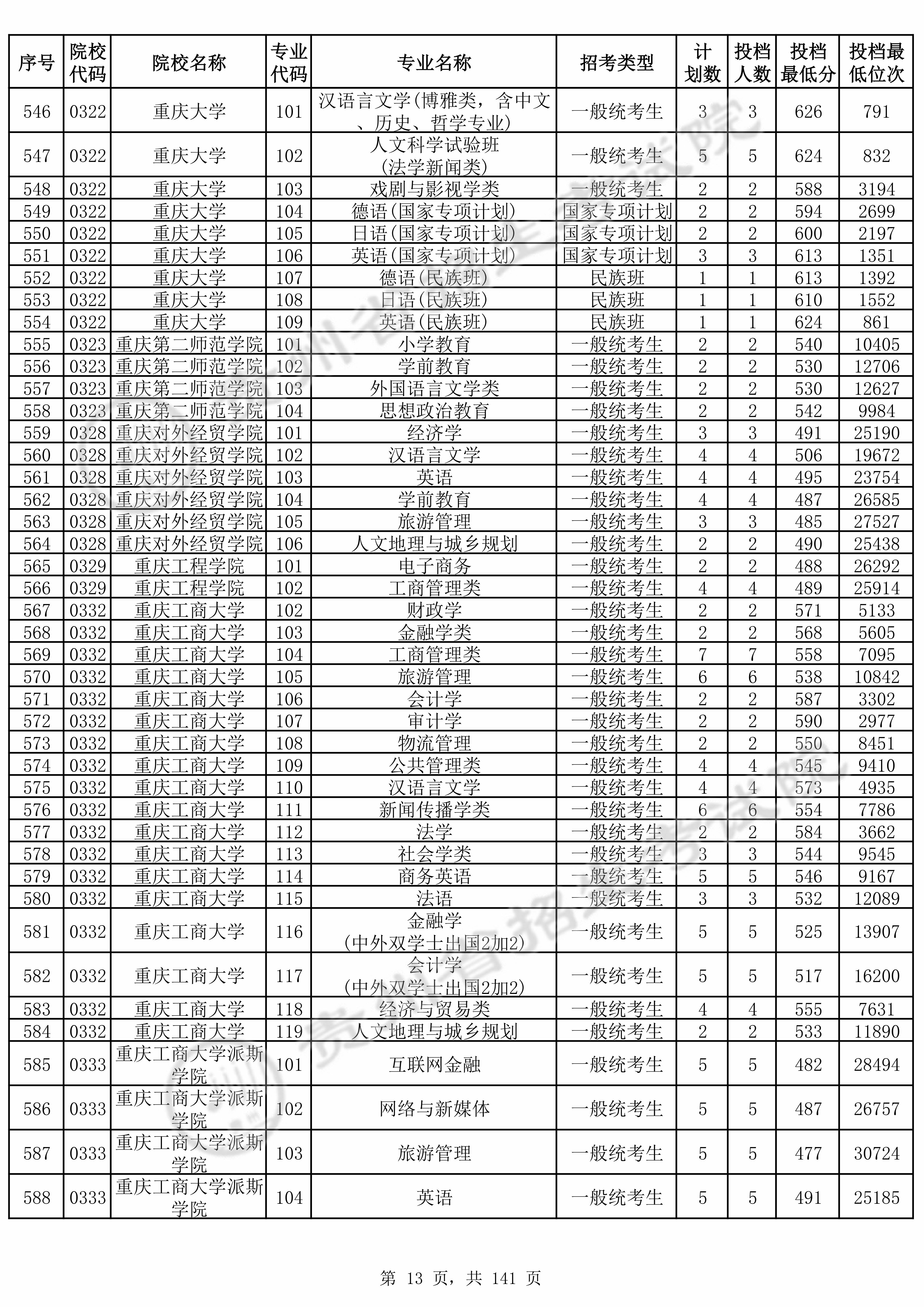 2025年贵州高考普通类本科批 重庆大学 的 日语 专业录取分数溯源信息