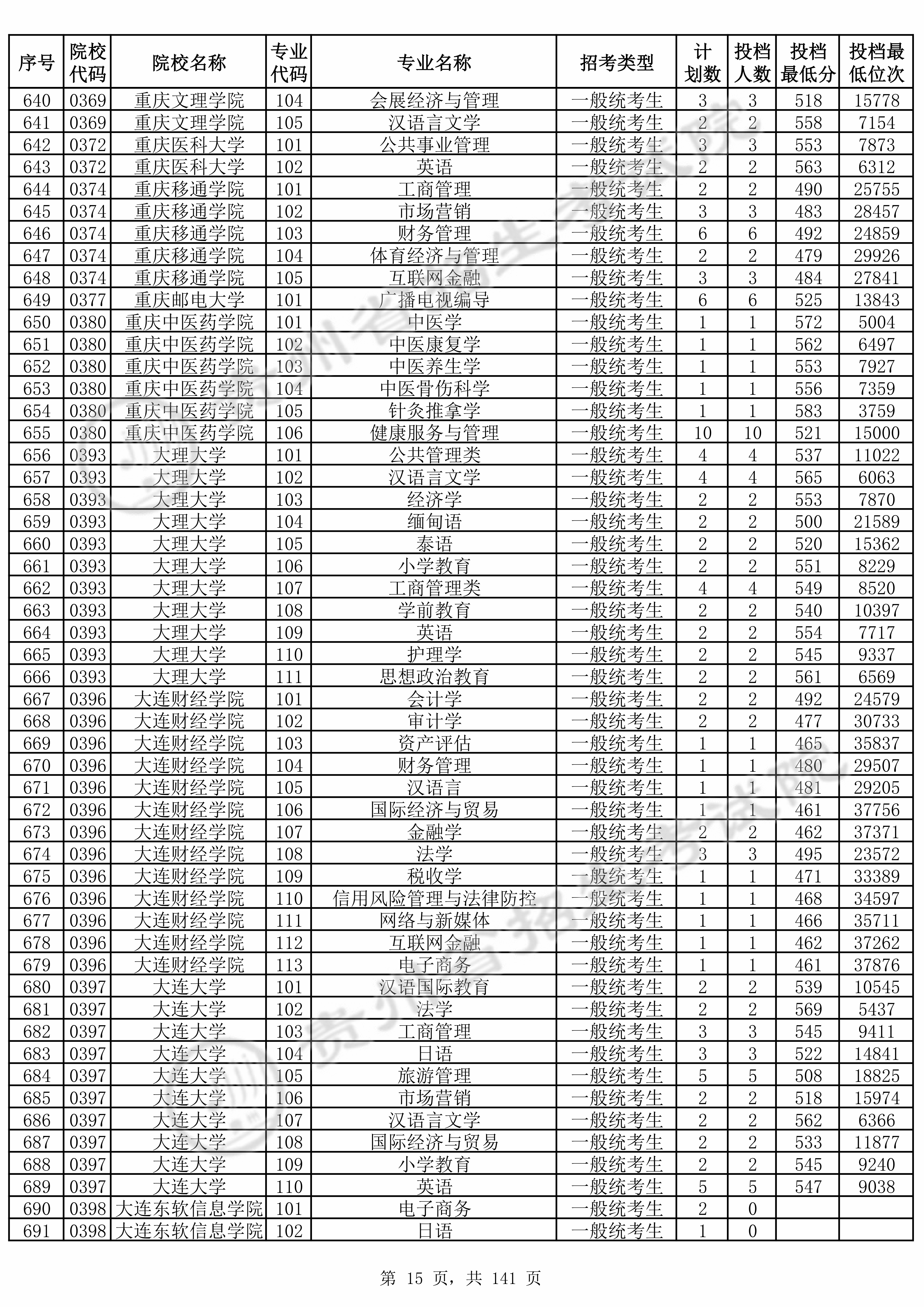 | 院校代码 | 院校名称 | 专业代码 | 专业名称 | 最低分数 | 最低位次 | 专业层次 | 限考科目 | 投档 |