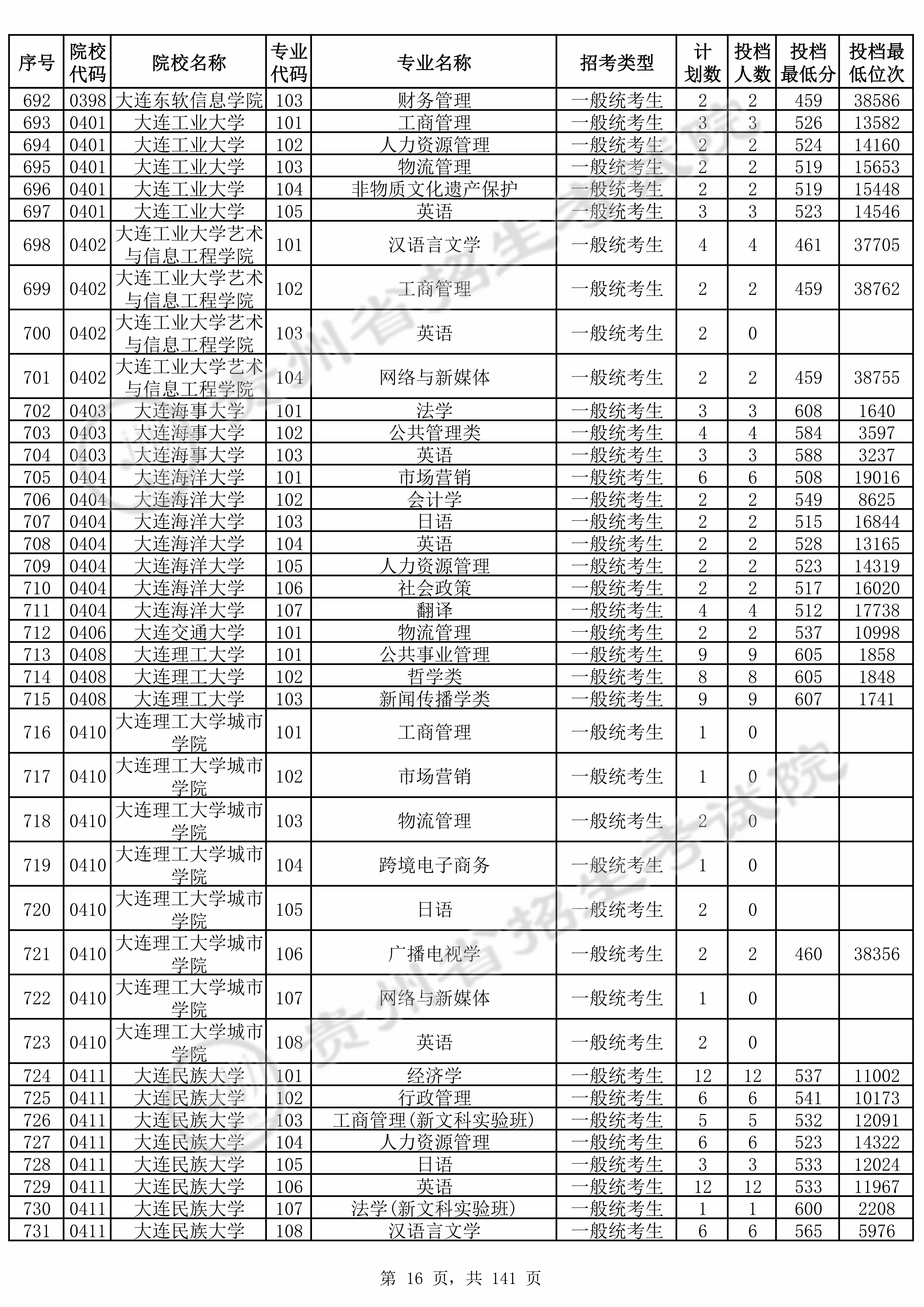 | 0401 | 大连工业大学 | 103 | 物流管理 | 519 | 15653 | 本科 | 历史 ,再选: 不限 | 1 |