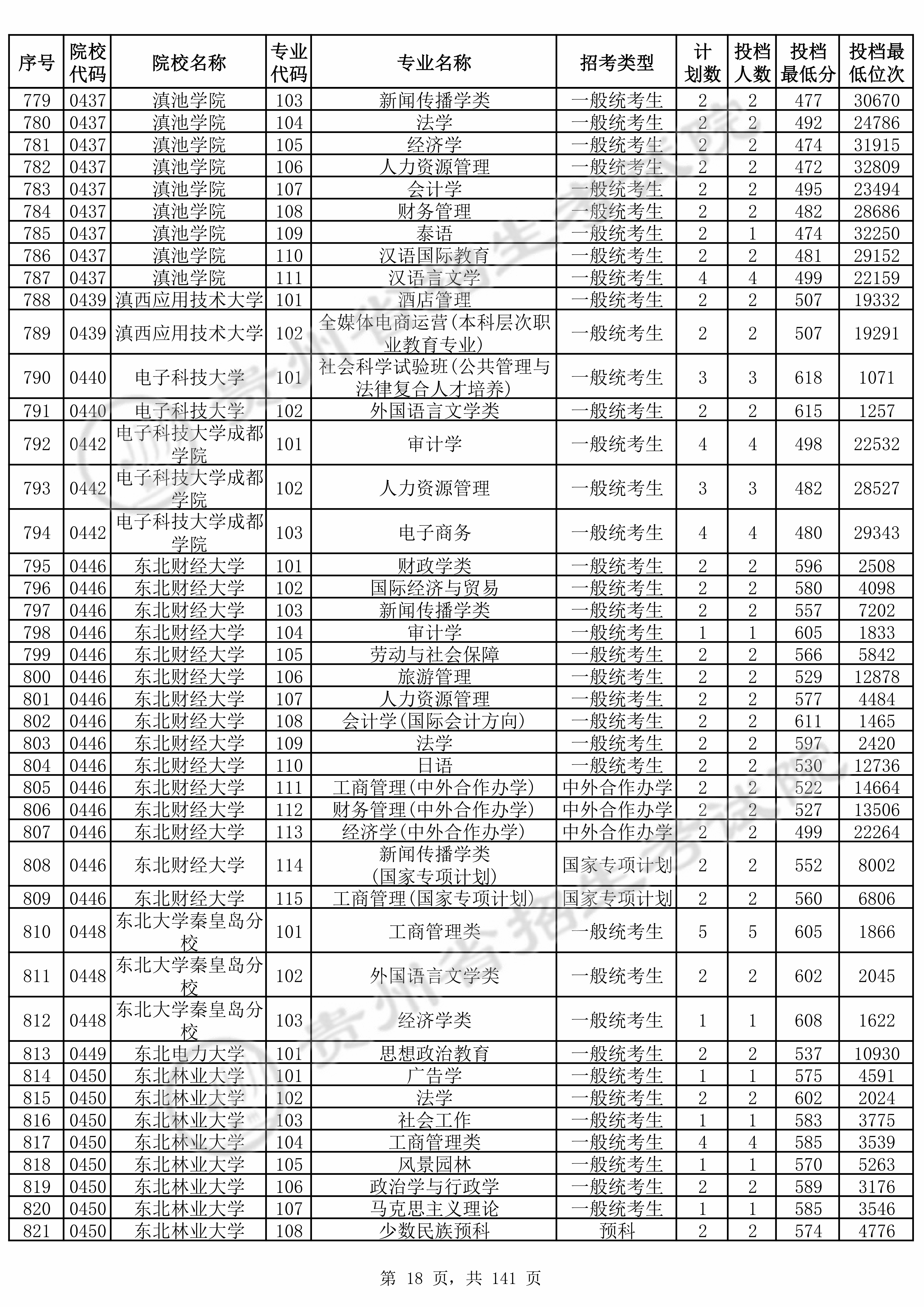 2025年贵州高考普通类本科批 东北财经大学 的 会计学 专业录取分数溯源信息