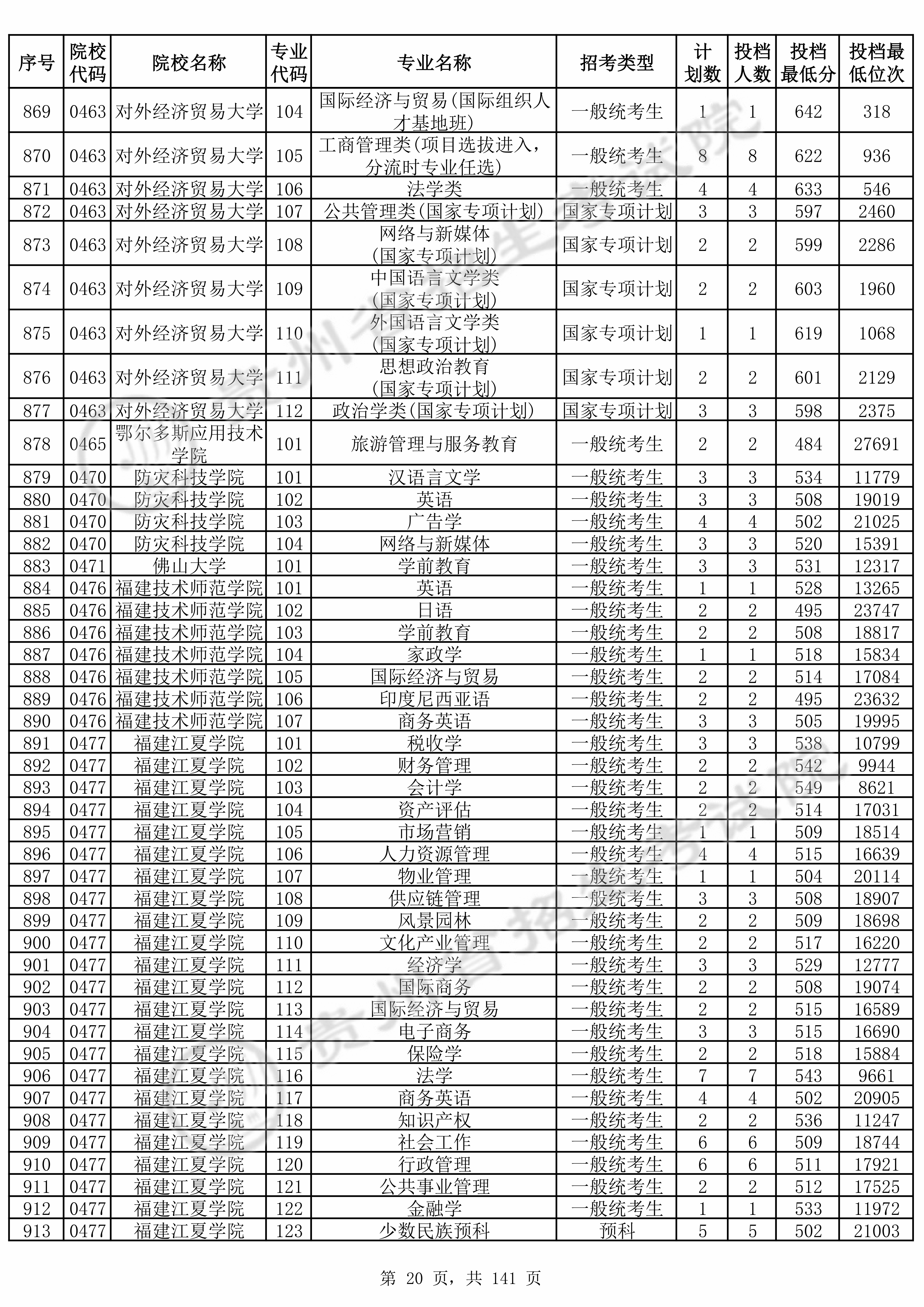 | 0463 | 对外经济贸易大学 | 109 | 中国语言文学类(国家专项计划) | 603 | 1960 | 本科 | 历史 ,再选: 不限 | 1 |