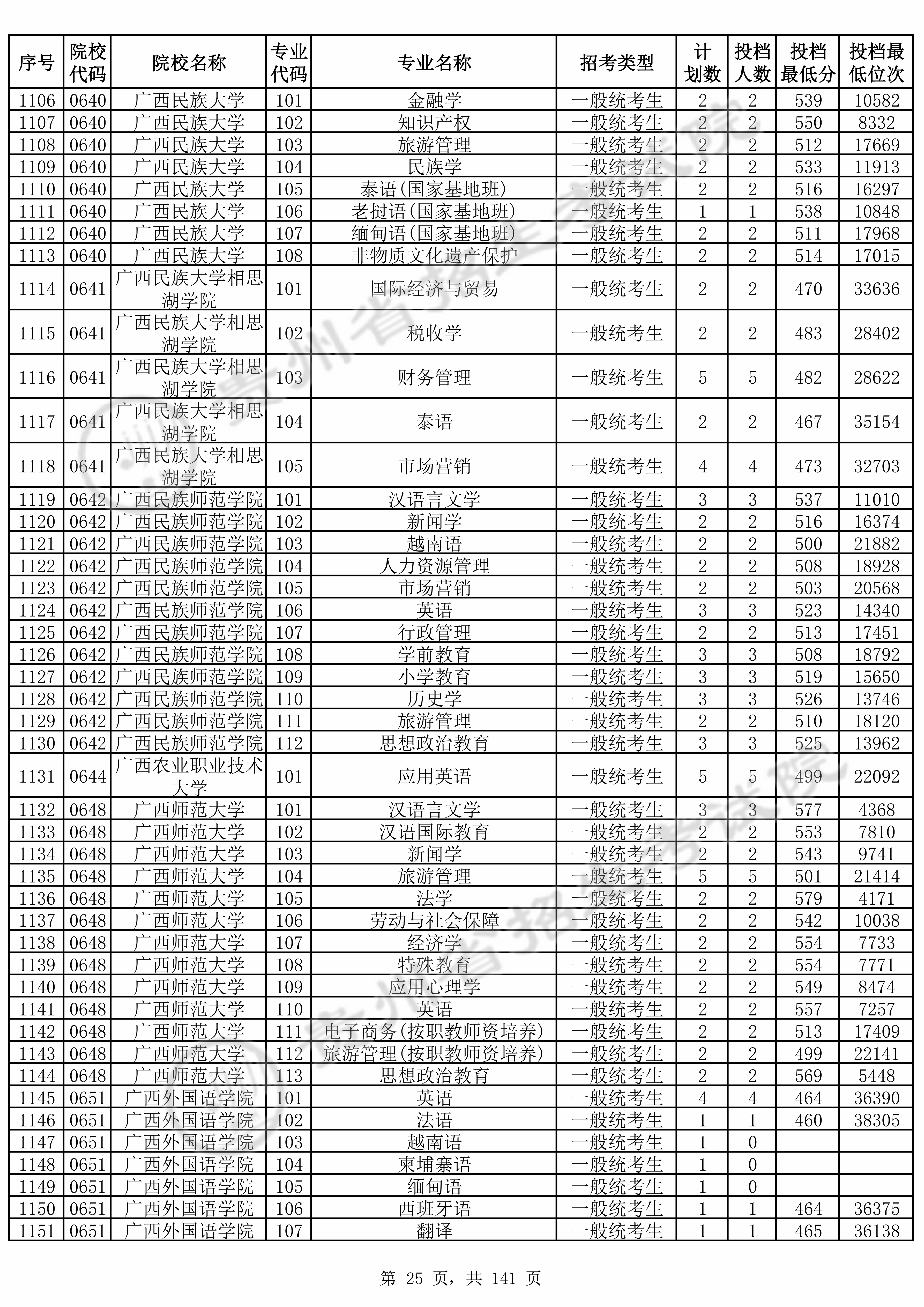 2025年贵州高考普通类本科批 广西民族大学 的 泰语 专业录取分数溯源信息