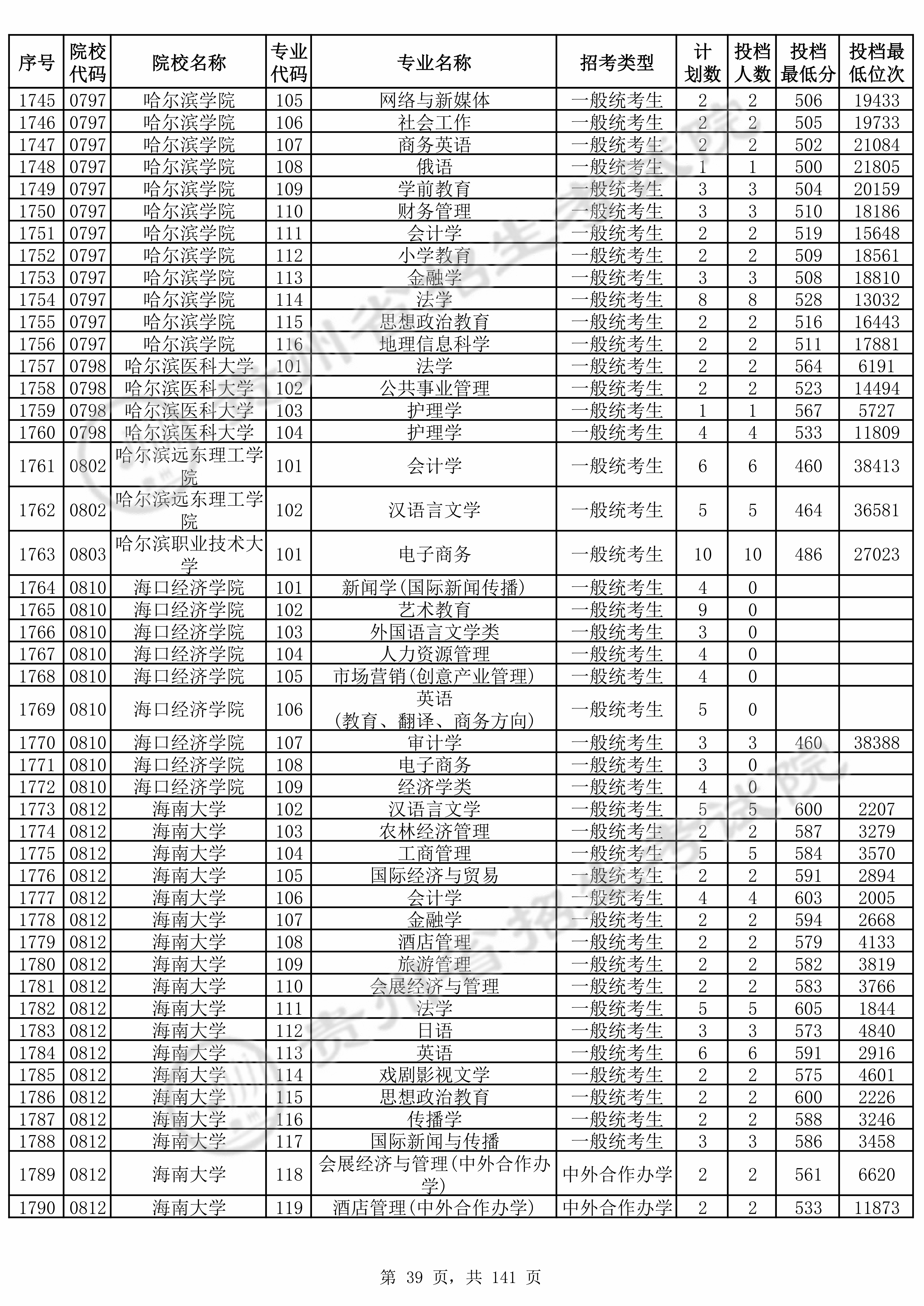 | 0797 | 哈尔滨学院 | 108 | 俄语 | 500 | 21805 | 本科 | 历史 ,再选: 不限 | 1 |